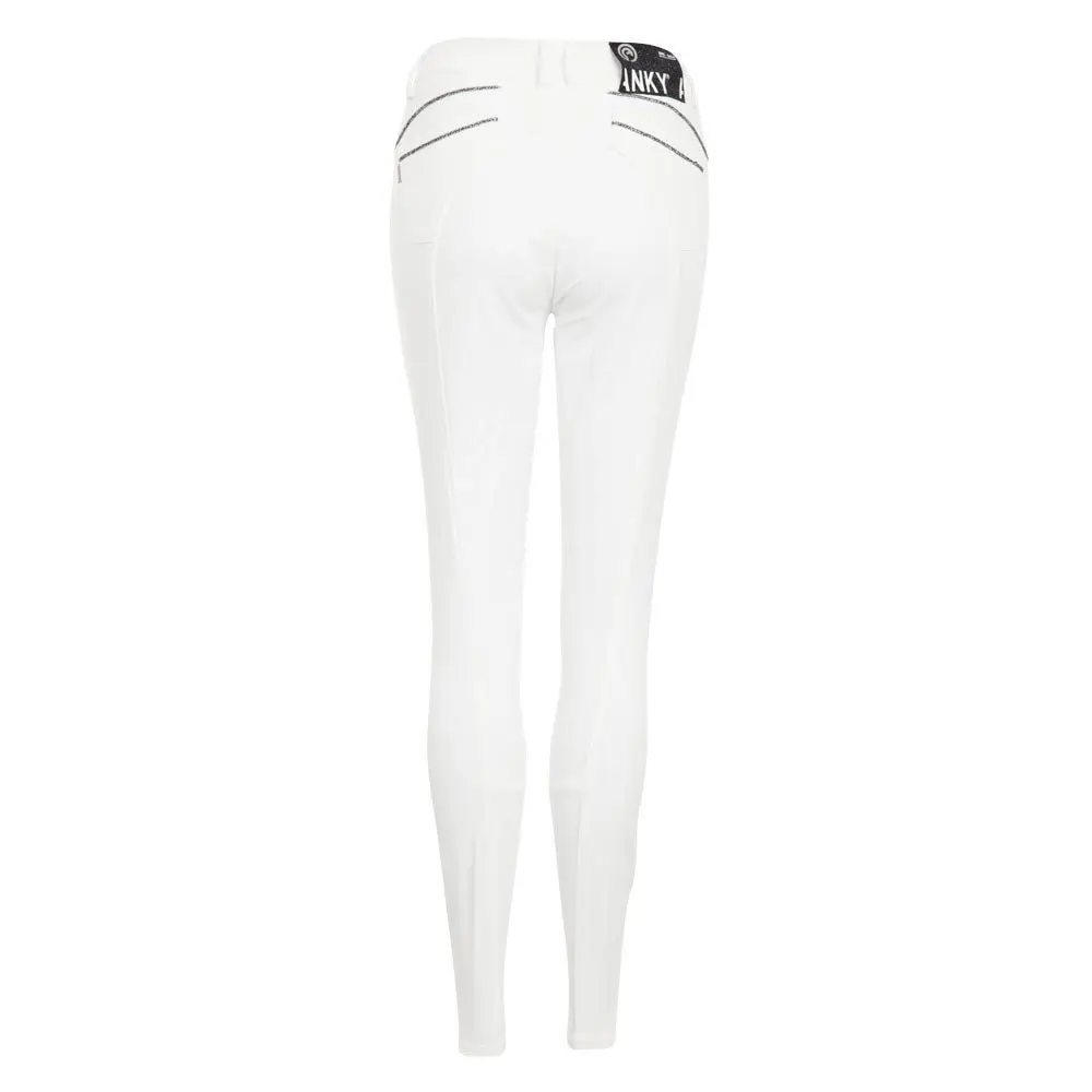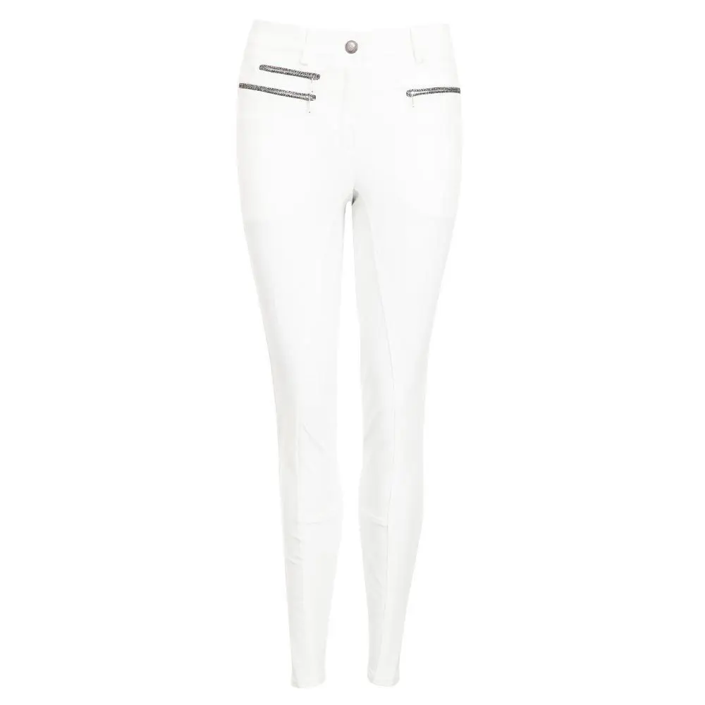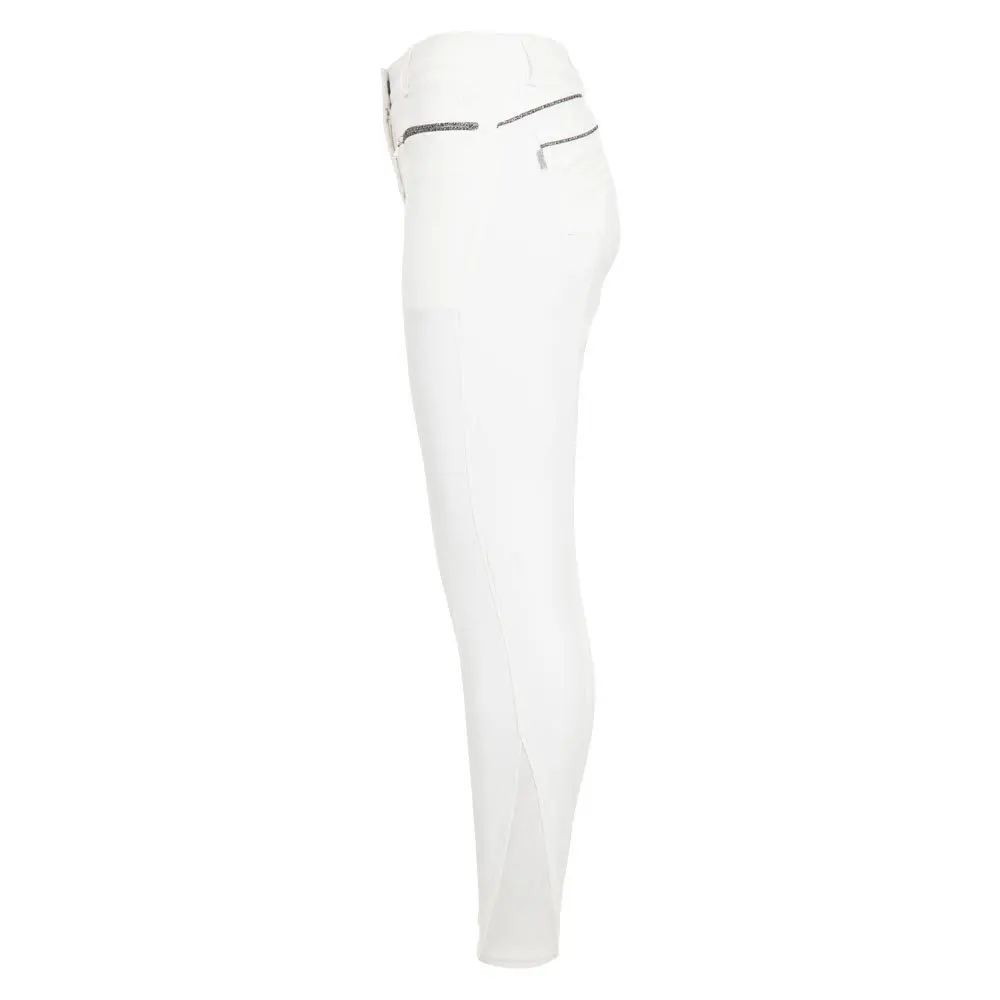 Deze rijbroek is elegant en opvallend zonder schreeuwerig te worden. Aan de voorkant zijn de drie ritszakken voorzien van zilver glinsterend tape en ook aan de achterkant van de broek is gebruik gemaakt van zilverkleurige details. Deze broek heeft de wow-factor! De rijbroek is gemaakt van Aqua-X, dit technische materiaal heeft een groot absorberend vermogen, droogt snel en helpt bovendien bij het reguleren van de lichaamstemperatuur.