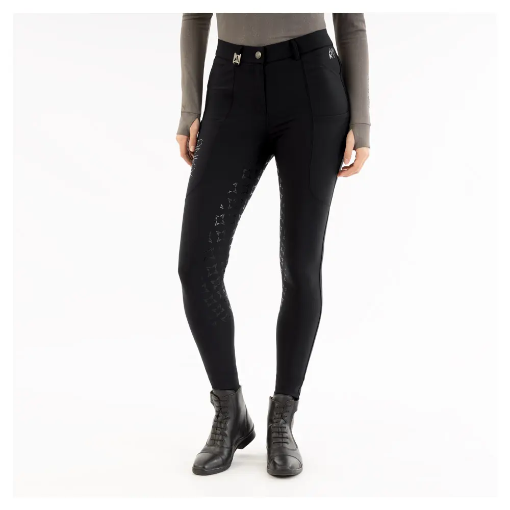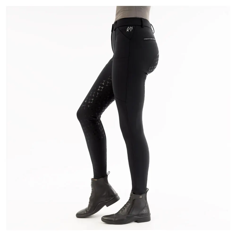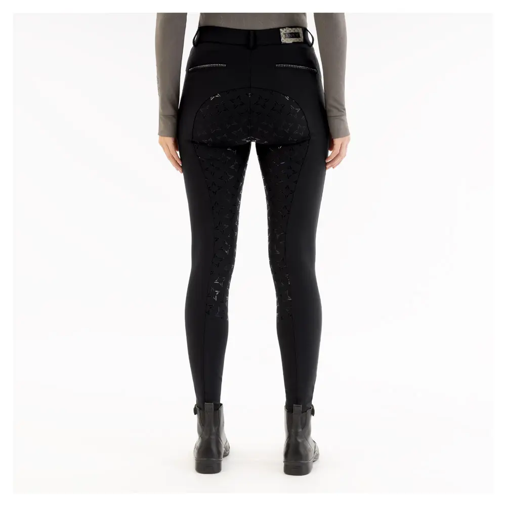 Deze rijbroek met siliconen zitvlak is ontworpen voor de moderne ruiter die zowel comfort als stijl waardeert. Deze rijbroek is vervaardigd uit elastische stof met een licht geborstelde binnenkant, wat zorgt voor een uitstekende ademend vermogen en vochtafvoerende eigenschappen. De ton-sur-ton siliconenprint op het zitvlak biedt extra grip tijdens het rijden, waardoor je jezelf beter kunt concentreren op je prestaties.