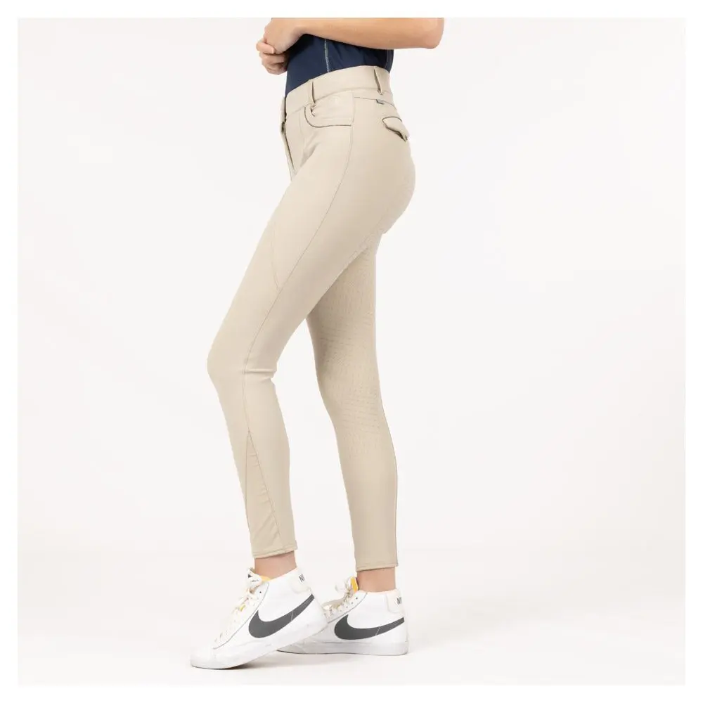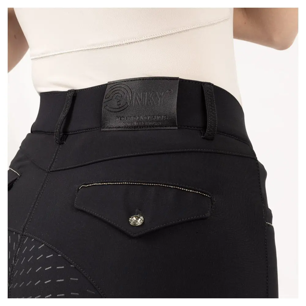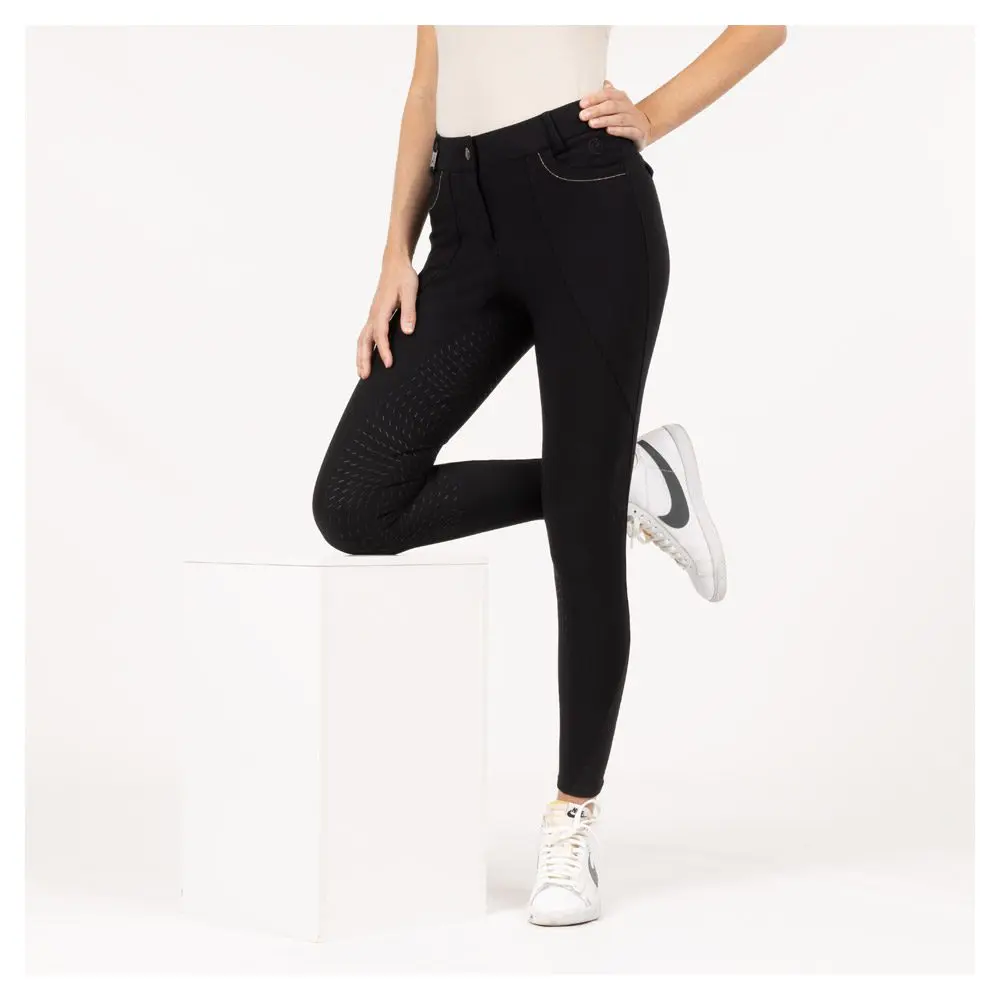 โข Inzetstuk van lycra in dezelfde kleur op de kuit