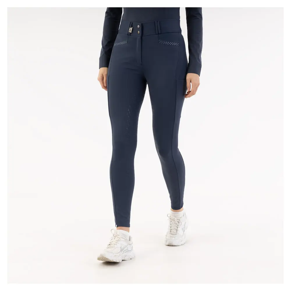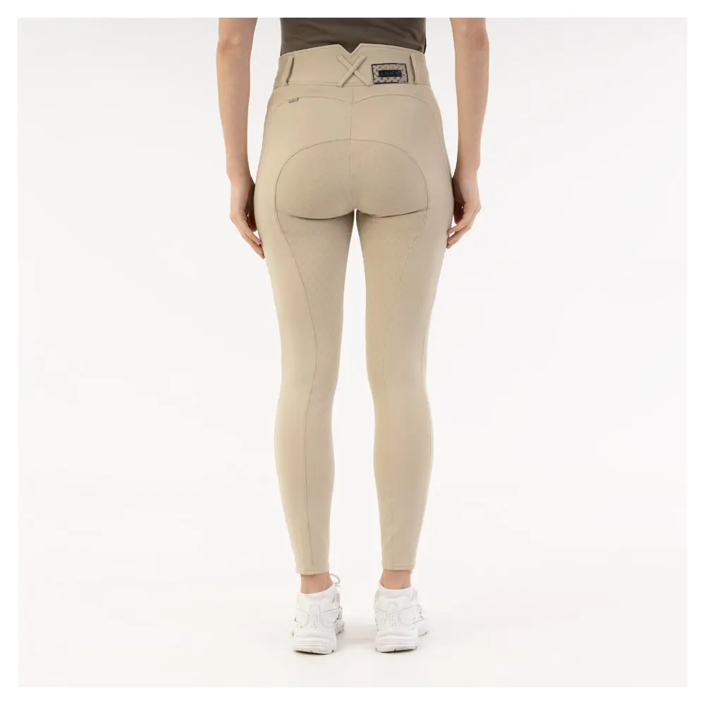 โข Hoge tailleband, V-vormig aan de achterkant, 2 haak-/oogknopen en metalen afwerking met logo