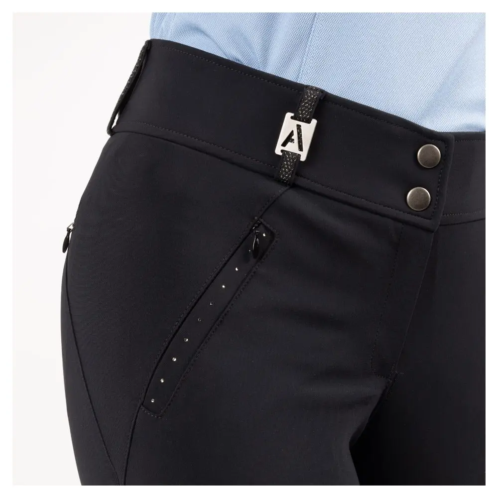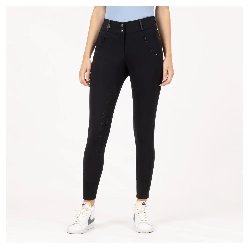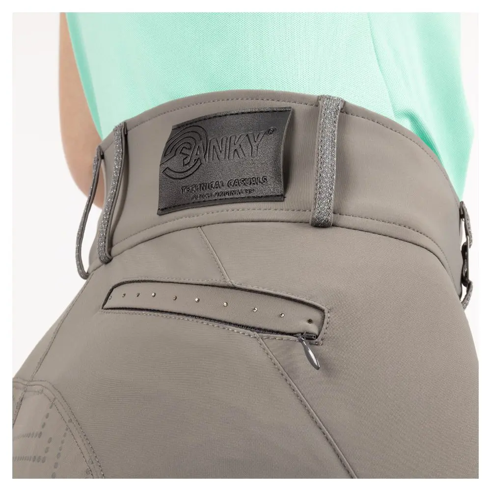 โข De hoge tailleband heeft 2 knopen en een metalen logo