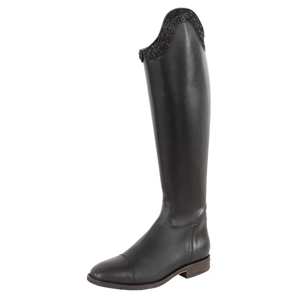 De laarzen zijn gemaakt van hoogwaardig, zacht, Europees Premium leder dat lang mooi blijft (dikte: 1.6 – 1.8 mm). De buitenkant is semi verhard en voorzien van een opvallende, glanzende, Crystal Rock dressuurboog afgewerkt met een bies van lak. De zool heeft een klassieke look en is gemaakt van zeer slijtvast TPU met lederen inzetstukken en anti-slip. De inlegzool X-comfort is schokabsorberend en bevat DRI-LEXยฎ voor een goede vochtafvoer. De inlegzool en stevige hak zorgen samen voor een optimale schokabsorptie. De zachte binnenvoering van kalfsleder met 3 mm foam biedt extra comfort.