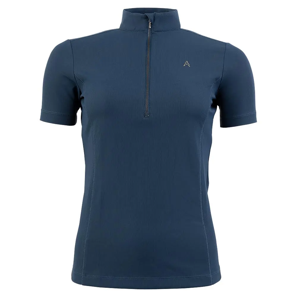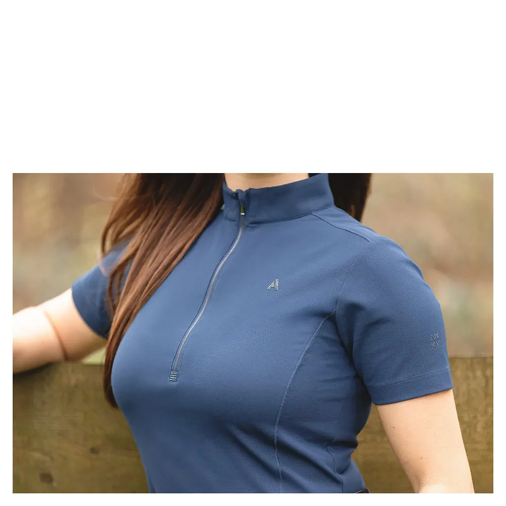 Dankzij de ademende, vochtafvoerende en sneldrogende eigenschappen zorgt dit shirt voor optimaal draagcomfort tijdens trainingen en wedstrijden. De dunne gun-metalkleurige rits is voorzien van een kinbeschermer en een strass-steenstjespatroon onderaan. Het logo van strass-steentjes op de borst maakt het shirt op stijlvolle wijze af.