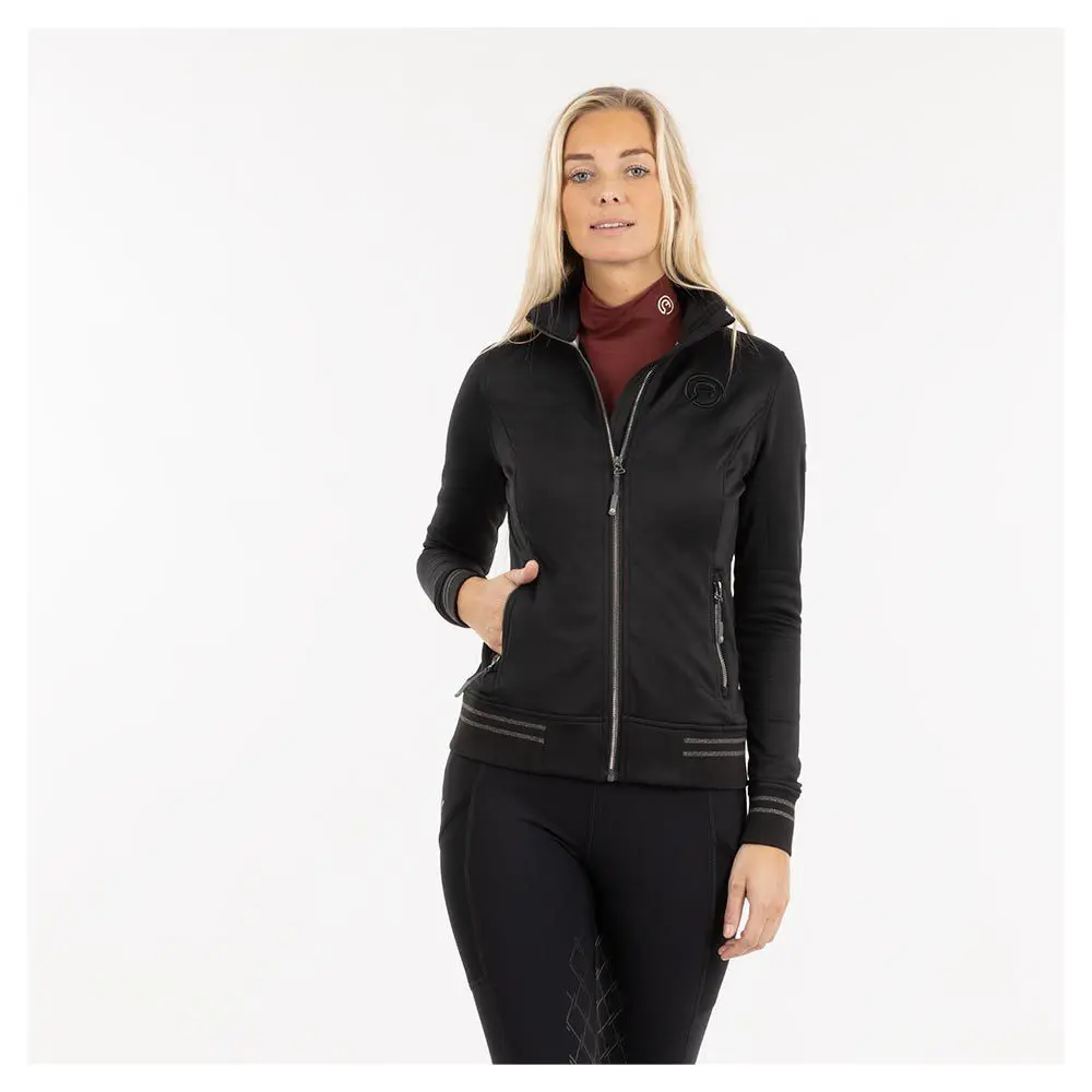โ€ข Geribde stof met kleine donker-zilveren strepen op de onderkant en mouwuiteinden