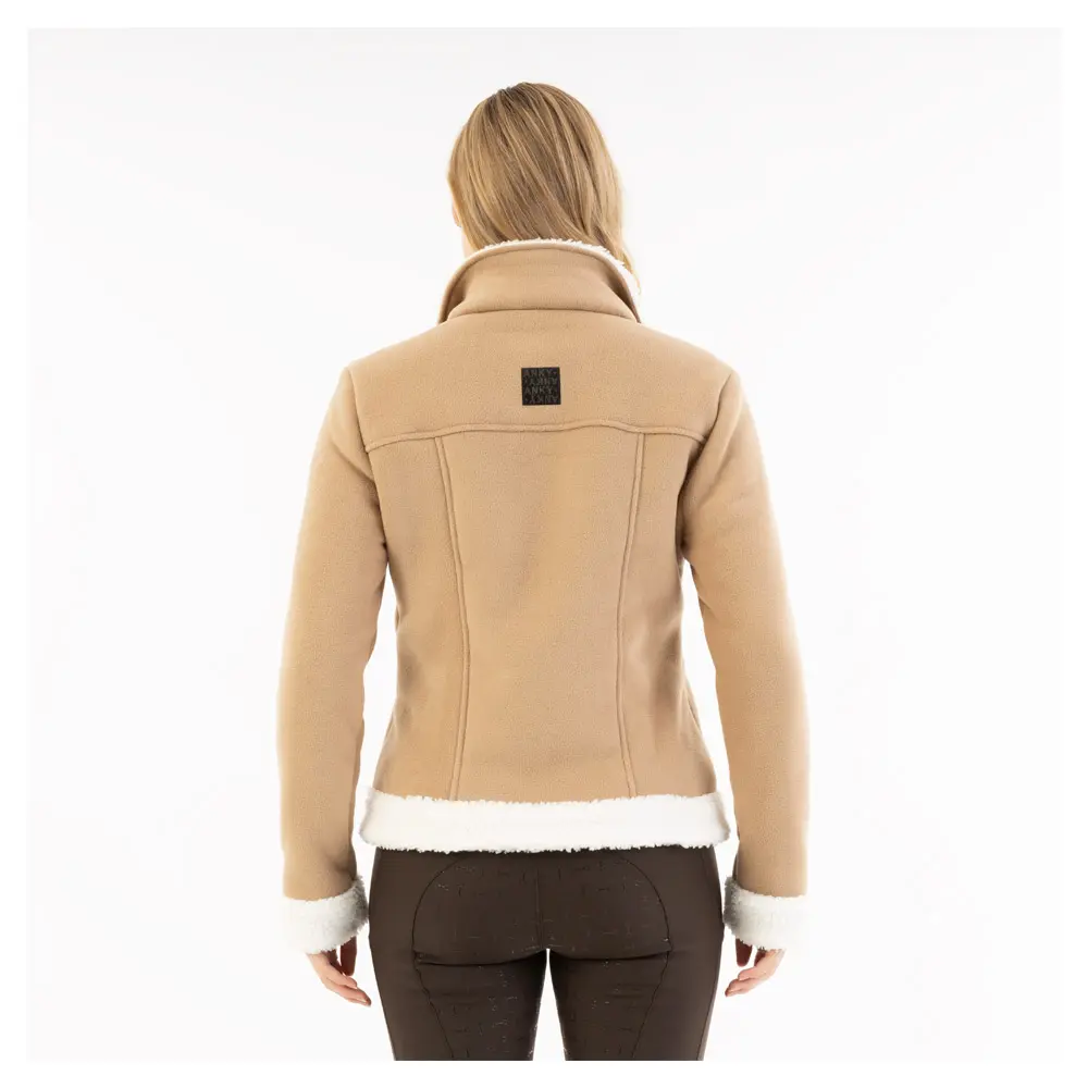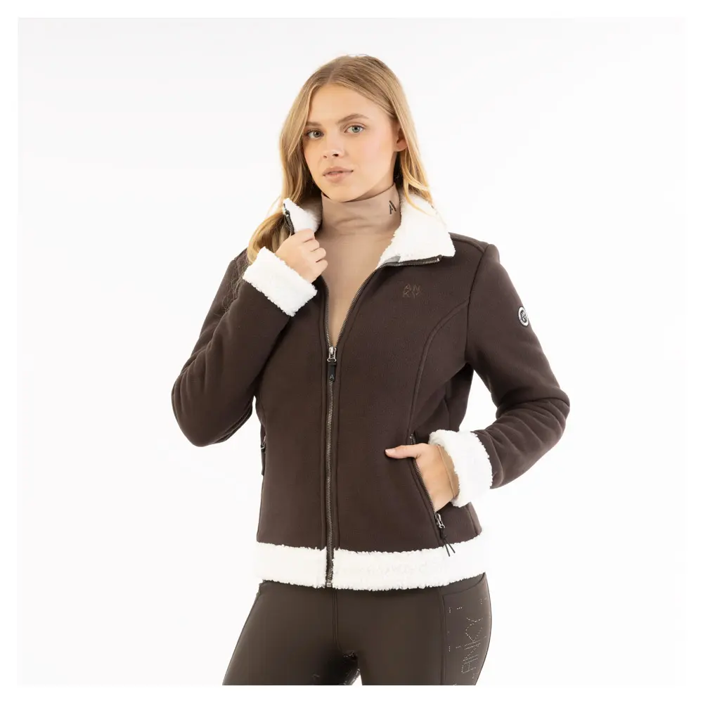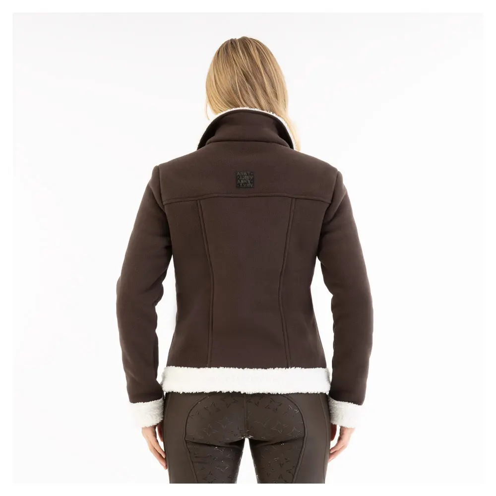 โ€ข Contrasterende teddystof in kraag, mouwboord en onderkant