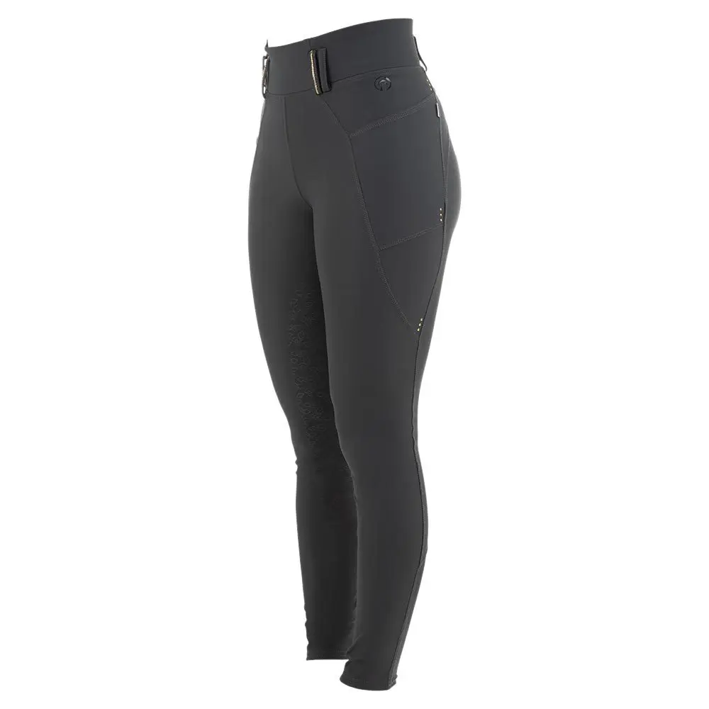 โข De hoge tailleband heeft 6 riemlussen en een metalen logo