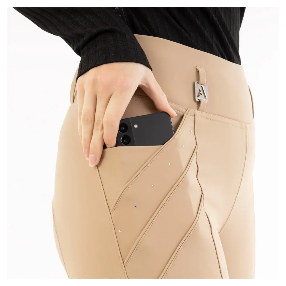 โ€ข Zak voor een mobiele telefoon aan beide zijden, verfraaid met zilveren strass-steentjes en stoffen biezen