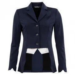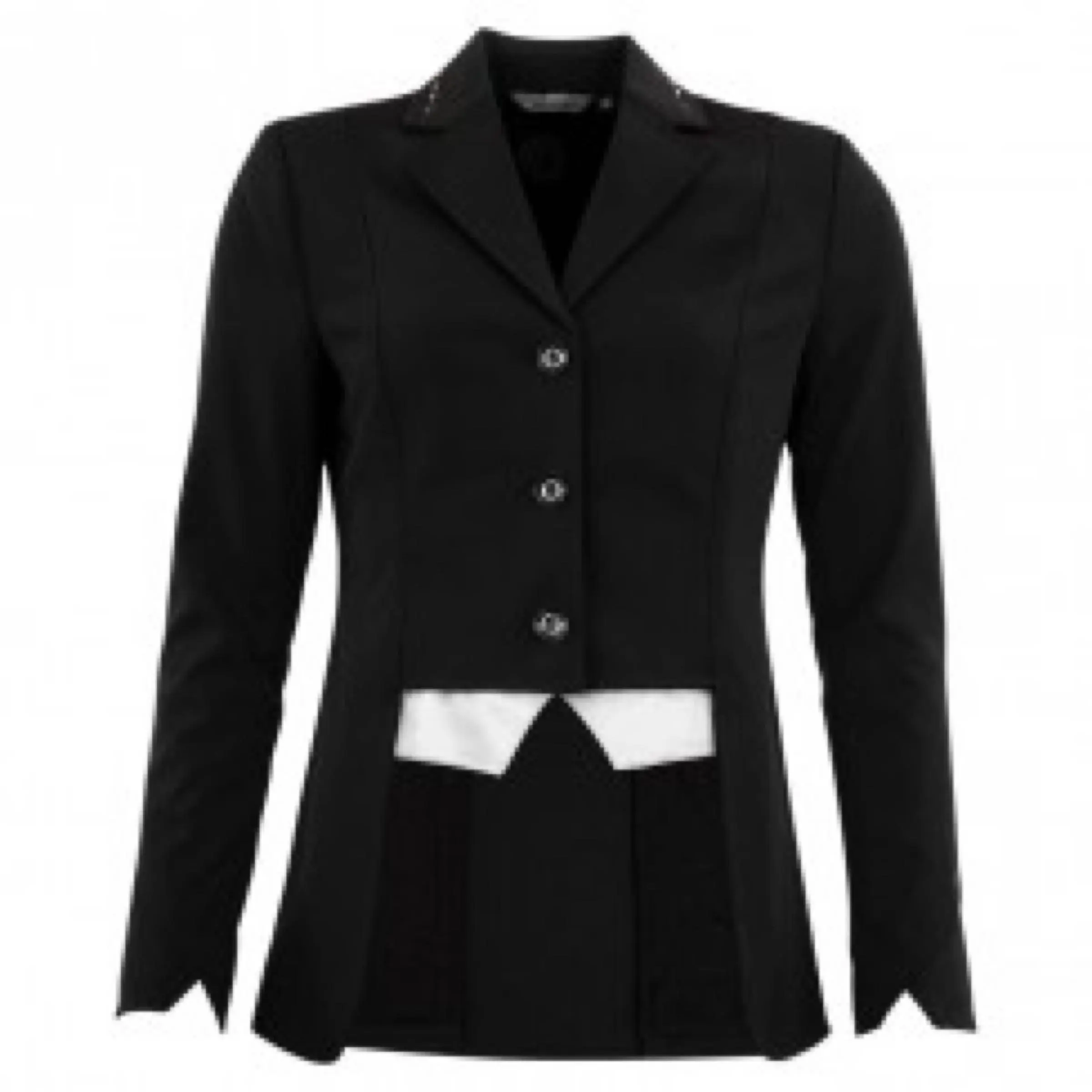 De Short Tailcoat Pro is kort aan de voorzijde en lang aan de achterzijde waar 2 splitten voor optimale bewegingsvrijheid zorgen. De getailleerde wedstrijdjas is rekbaar, waterafstotend en ademend door het gebruikte materiaal dat bestaat uit 85% nylon en 15% spandex gebonden met 100% polyester. De jas is voorzien van een zwarte 4-way stretch mesh-voering met zilveren glitters.