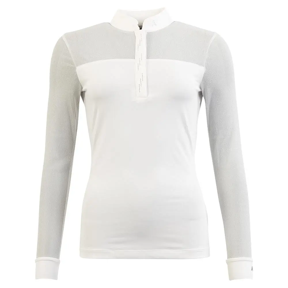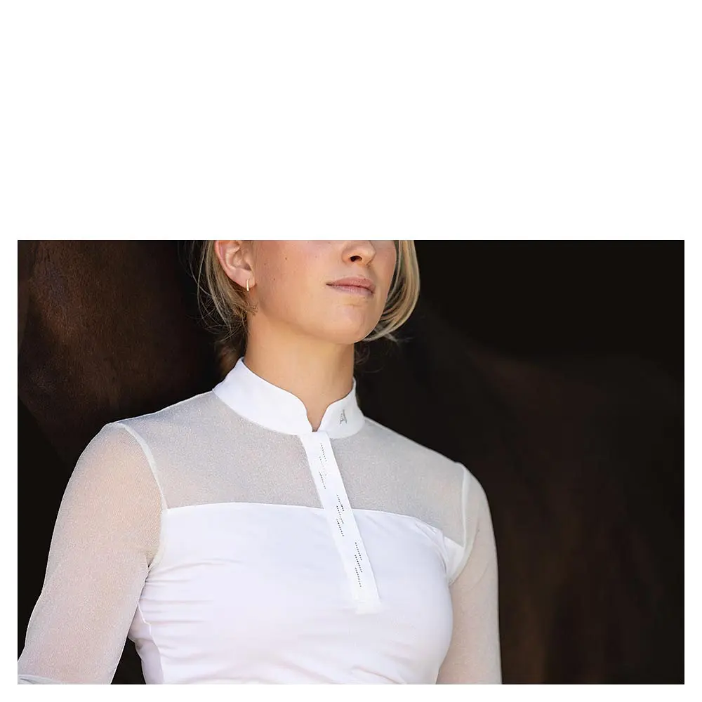 Dit super elegante shirt valt op door de combinatie van de zachte stretchy stof en de meshstof met glitters. Het mesh maakt het shirt heerlijk luchtdoorlatend en de glitters geven het shirt een sprankelende touch waardoor je zeker gezien wordt.