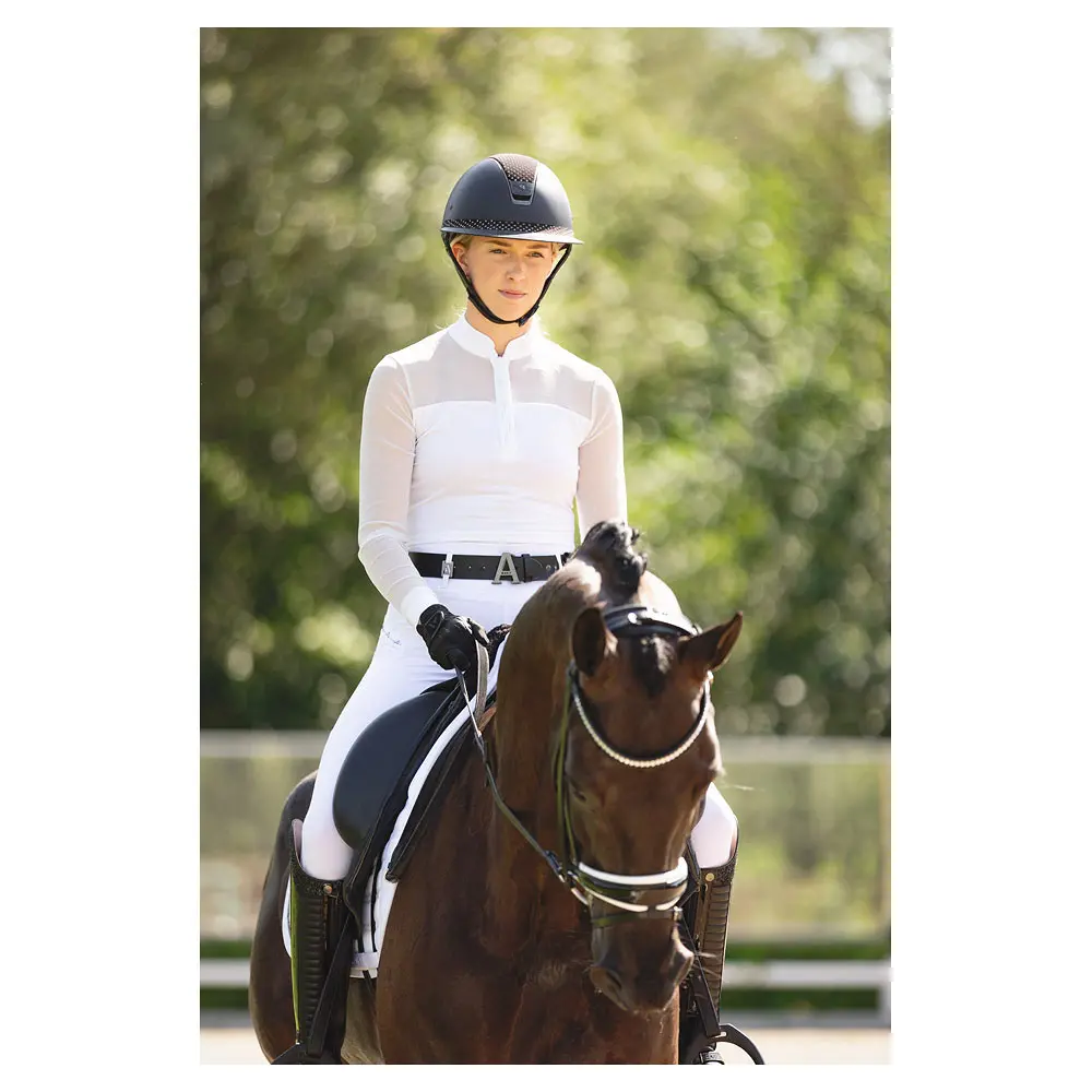 De prettige stofcombinatie biedt dankzij de ademende, vochtafvoerende en sneldrogende kwaliteiten optimaal comfort. Daarnaast zorgt de Polygiene finish ervoor dat vervelende geurtjes langer wegblijven en dat je het shirt minder vaak moet wassen. Dat is goed voor het milieu en het shirt blijft daardoor ook langer mooi. De onzichtbare drukknopen zijn verfraaid met kleine strass-steentjes. De kraag en mouwen zijn mooi geaccentueerd omdat hier weer de zachte buitenstof gebruikt is.
