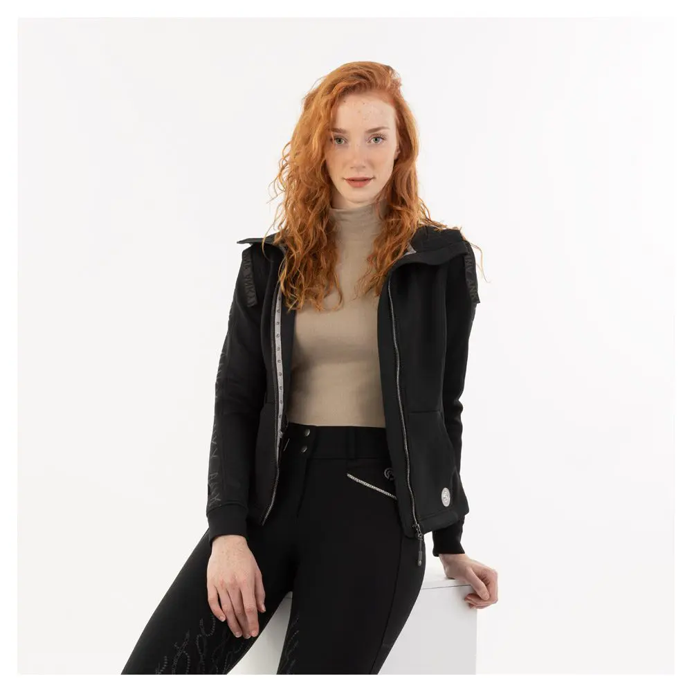 โข Capuchon met zilveren oogjes en zwart/grijs bandkoord met merklogo