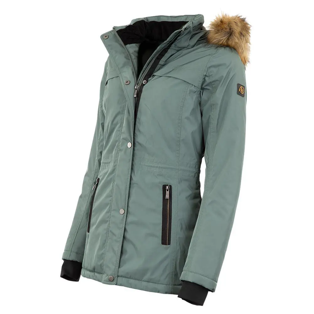 โ€ข Afneembare capuchon met bontrand en drukknop om te bevestigen