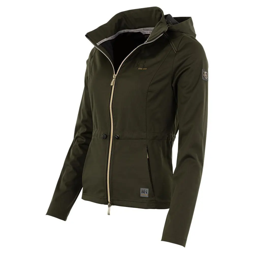 โ€ข Hoge kraag met afneembare capuchon en trekkoord