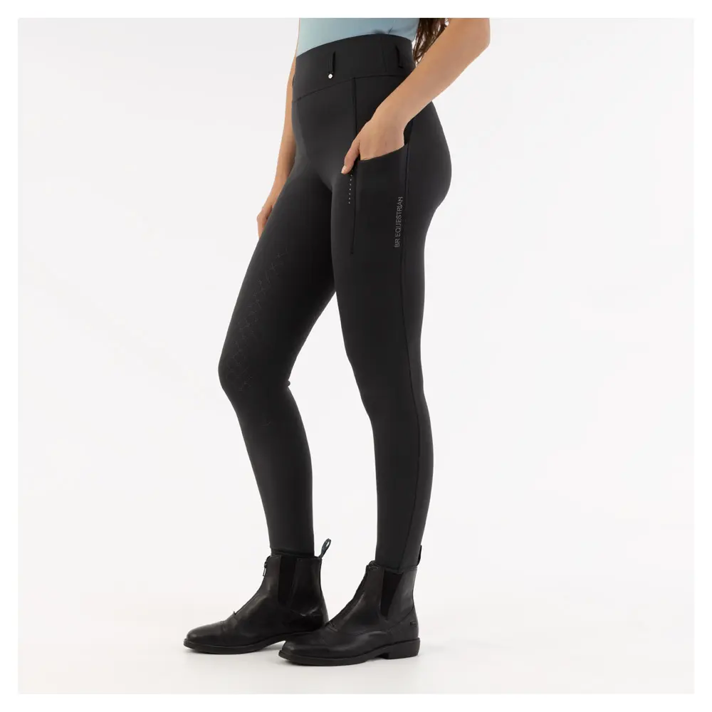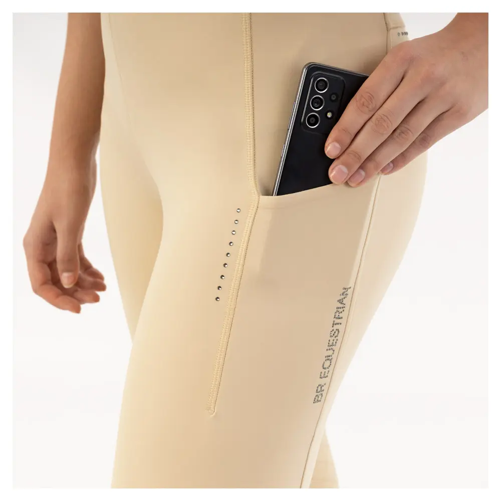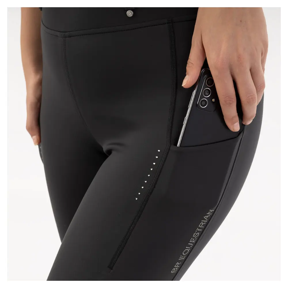 โข Tekst โBR Equestrianโ van kleine strass-steentjes op linkerzak