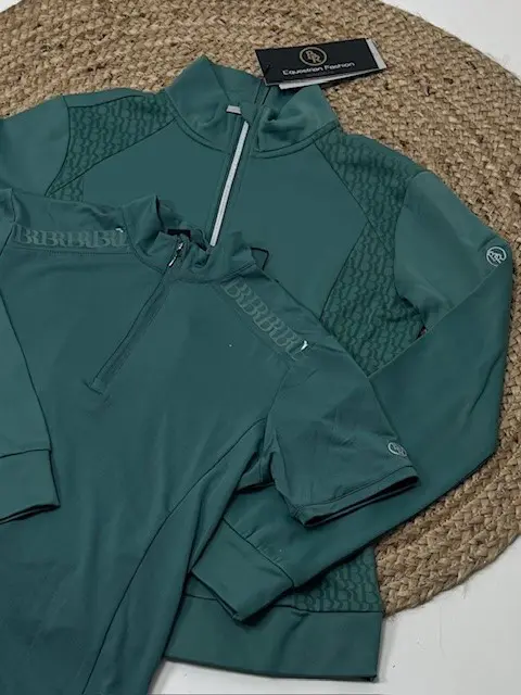 โข Opstaande kraag met halve ritssluiting