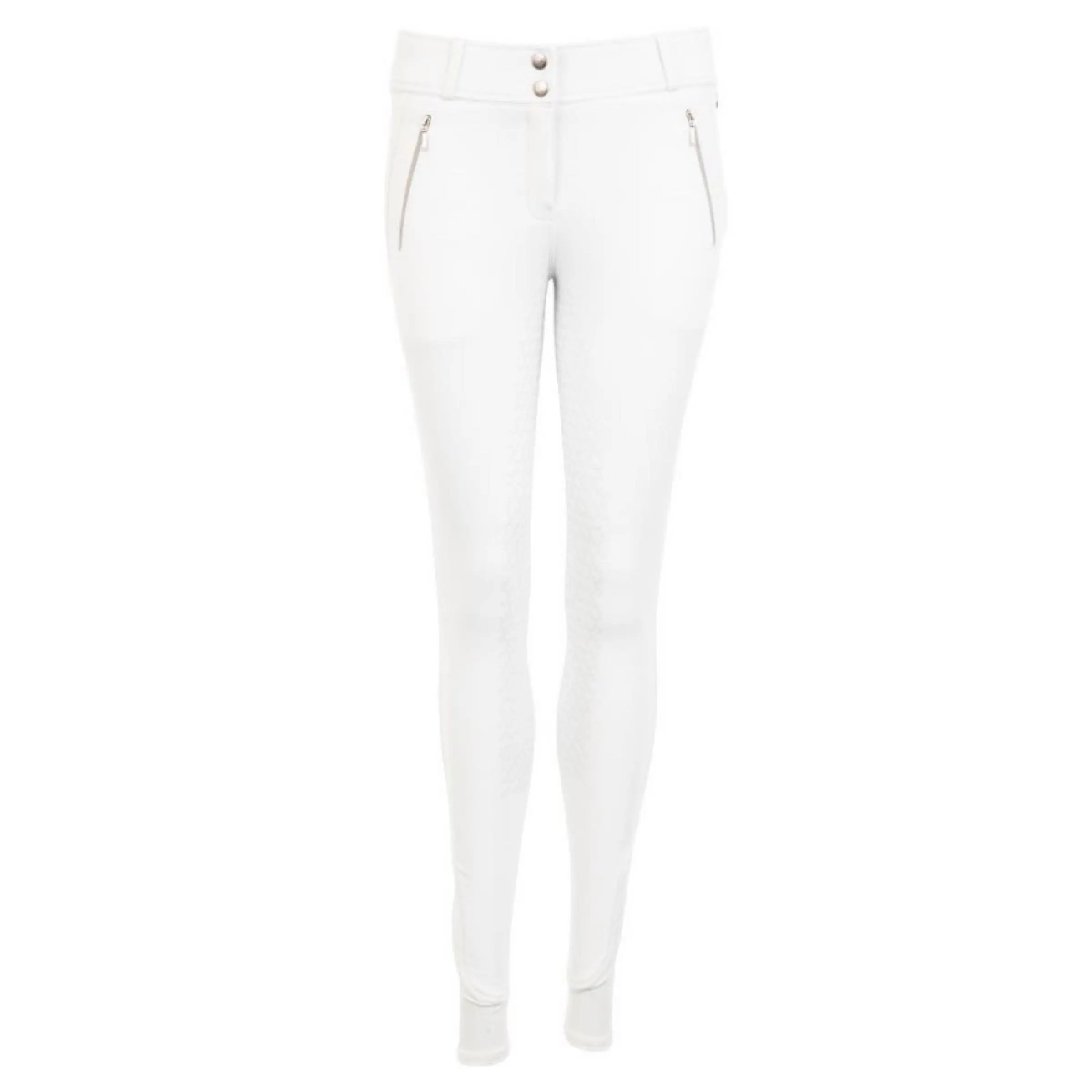Deze fraaie wedstrijdrijbroek voor dames valt op door de glanzende BR logoโs gemaakt van zilveren stiksel, de zilveren sluitingen en de glimmende siliconenprint. Het siliconen zitvlak zorgt voor extra grip en een stabielere zit.
