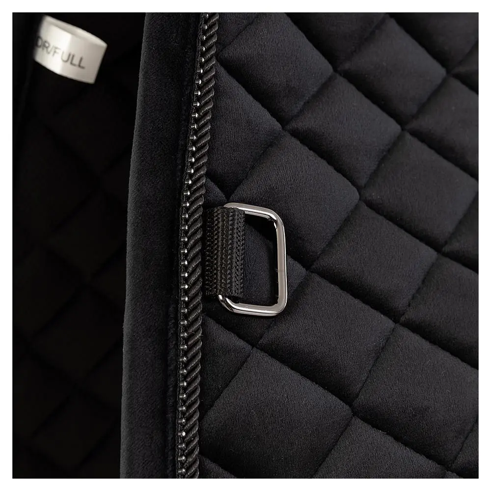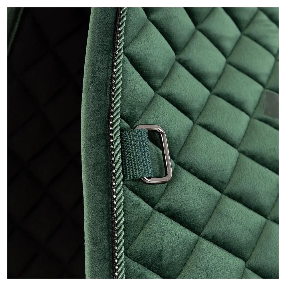 Het chique Opulence zadeldek heeft een mooi, fluwelen oppervlak en is omrand met een stralende koordbies met kleine glanzende steentjes. Hiermee steel je gegarandeerd de show.
