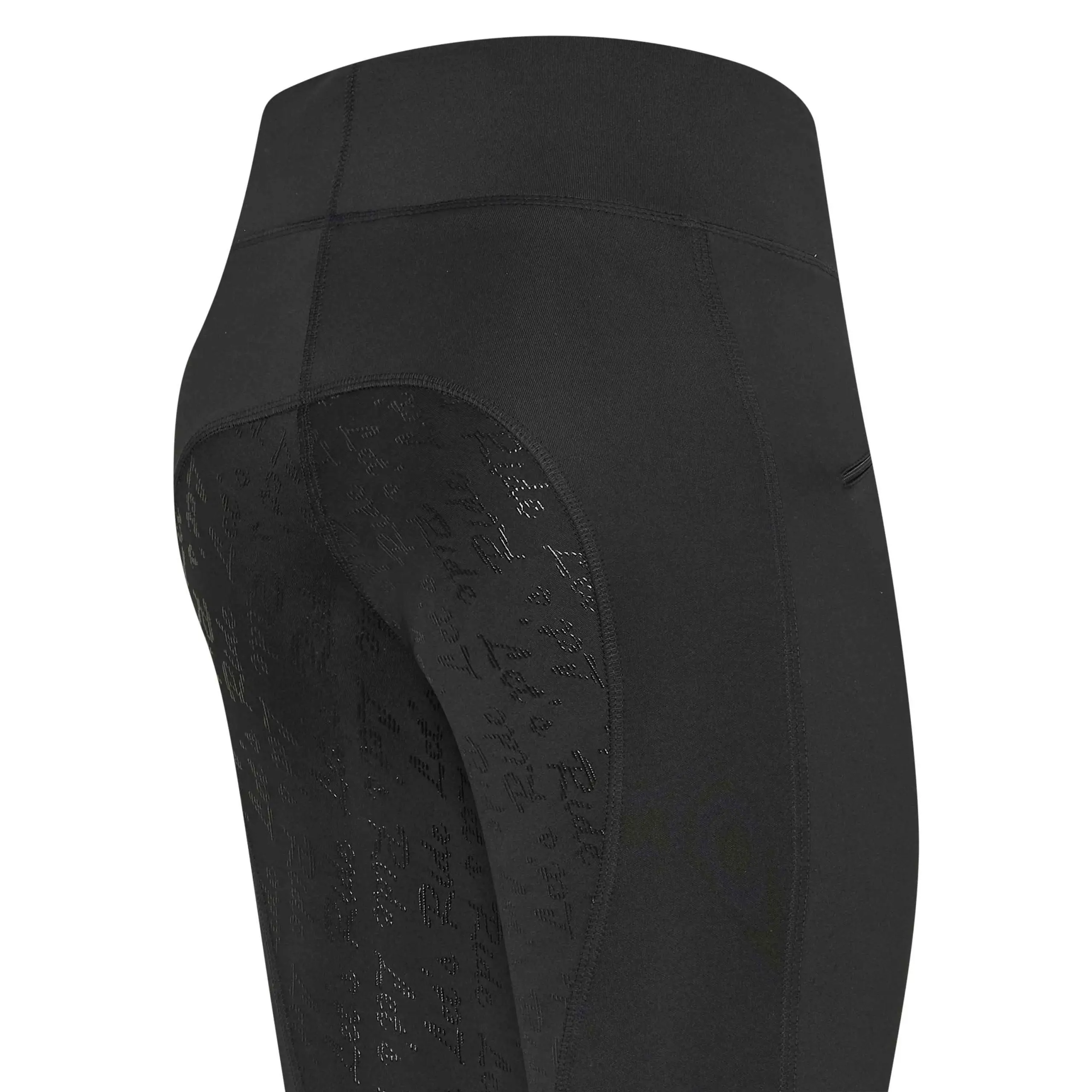 Easy Rider’s meest comfortabele rijlegging in een wintervariant. Trendy rijlegging met fullseat en extra hoge, elastische tailleband. Super comfortabel en vooral praktisch. Het gebruikte materiaal is super elastisch en van binnen geborsteld voor een winters warm gevoel. Adieu moeilijk aan te trekken ongemakkelijke rijbroeken! Geen riemlussen of knopen, geen schurende naden die ergens knellen of schuren! Het draagcomfort is vergelijkbaar met een moderne jogging- of yogabroek. Deze rijbroeken zitten super en bieden extreem veel bewegingsvrijheid. In het zadel geeft de, in de print met het statement โLetยดs Rideโ aangebrachte siliconen FullGrip veiligheid. Comfortabel, stijlvol en functioneel: goed ademend, soepel, vuil- en waterafstotend. Extra grote zakken (bijvoorbeeld voor Smartphones) in de hoge band aan de achterkant. Voorzak met ritssluiting voor kleine waardevolle zaken of lekkernijen. Leuk neveneffect: Het nauwsluitende materiaal van deze rijbroek maakt de benen slanker en de hoge, elastische tailleband helpt om een klein buikje te verstoppen. De elastische broekspijpen passen glad en probleemloos in laarzen en chaps. De stevige maar niet knellende pasvorm voorkomt het verschuiven van de broekspijp.