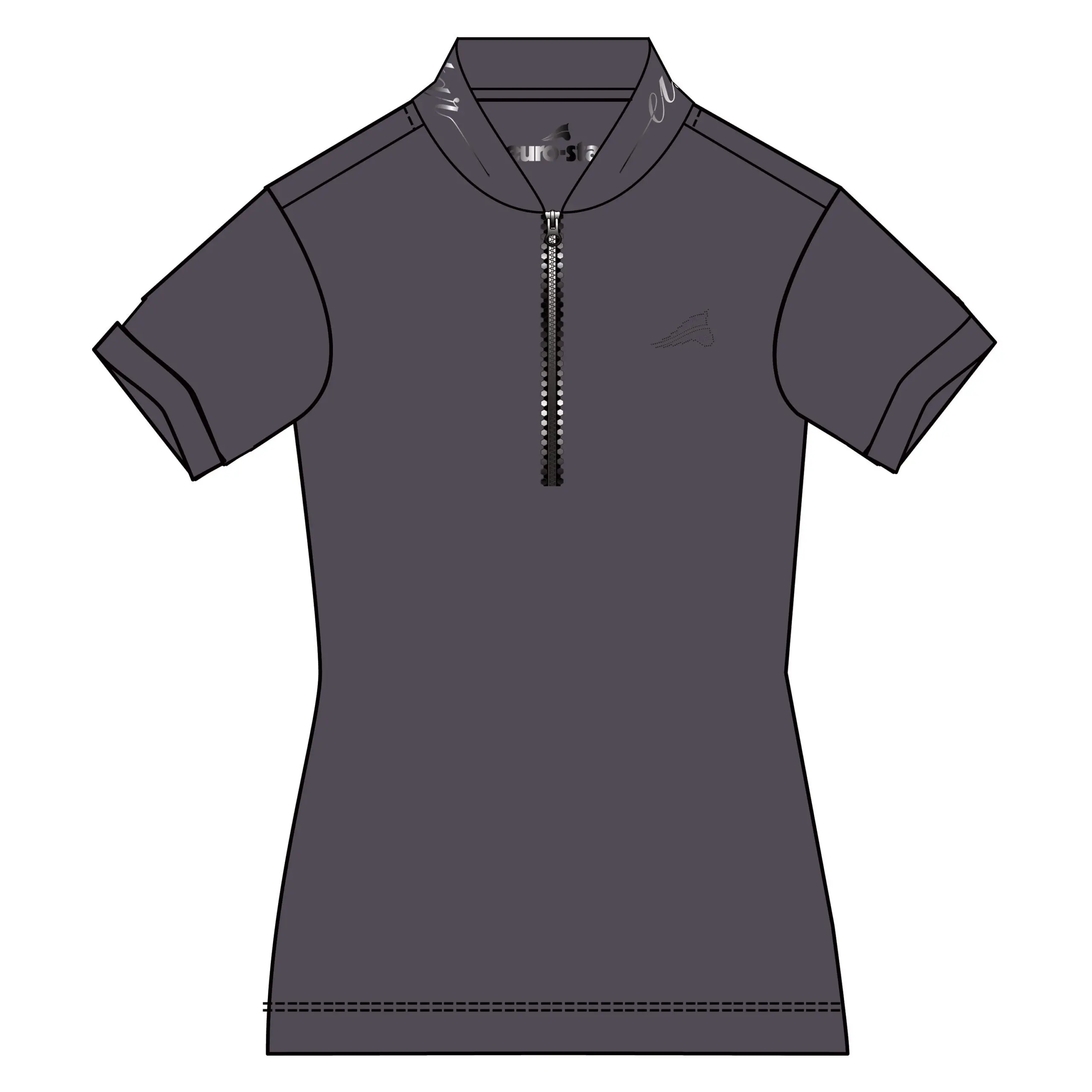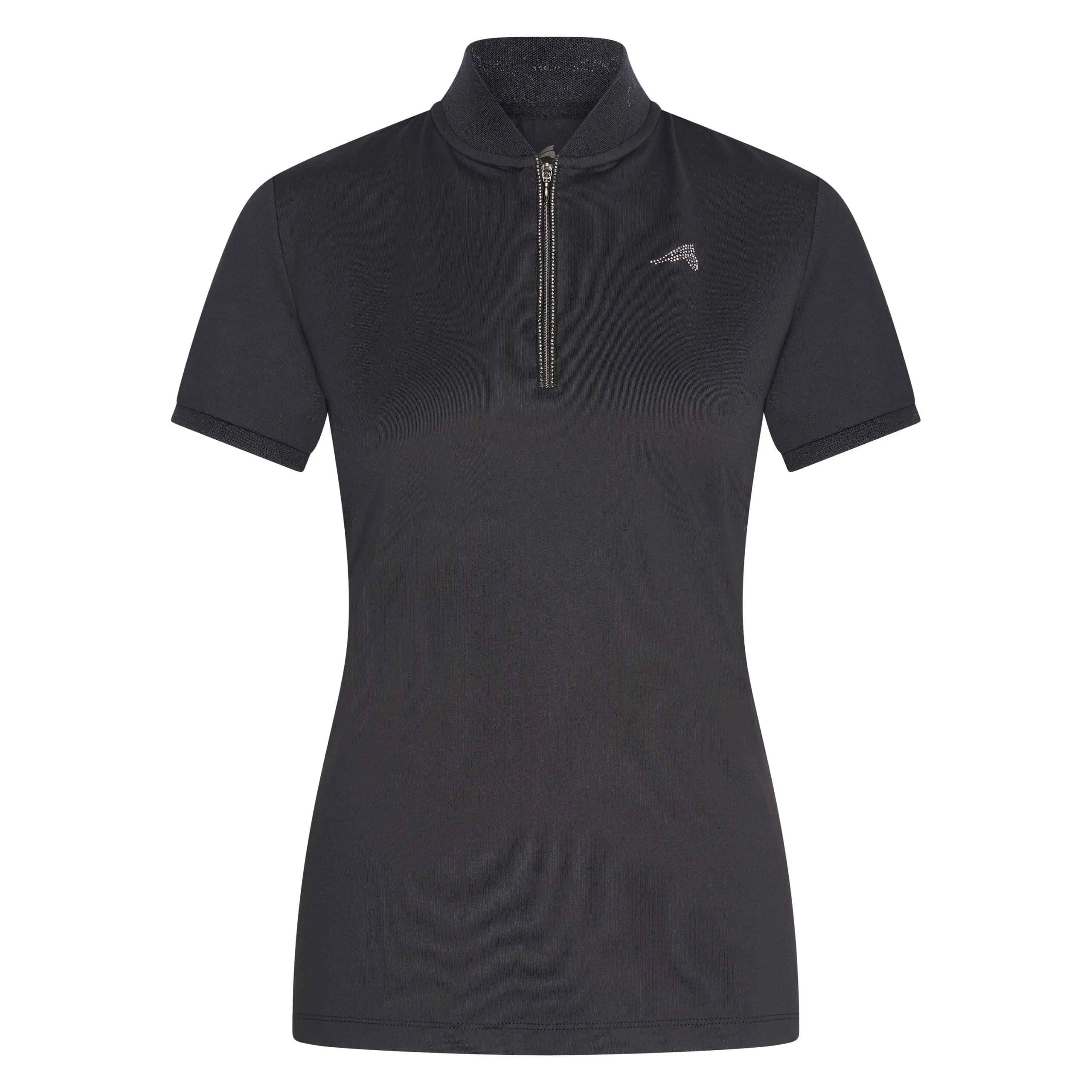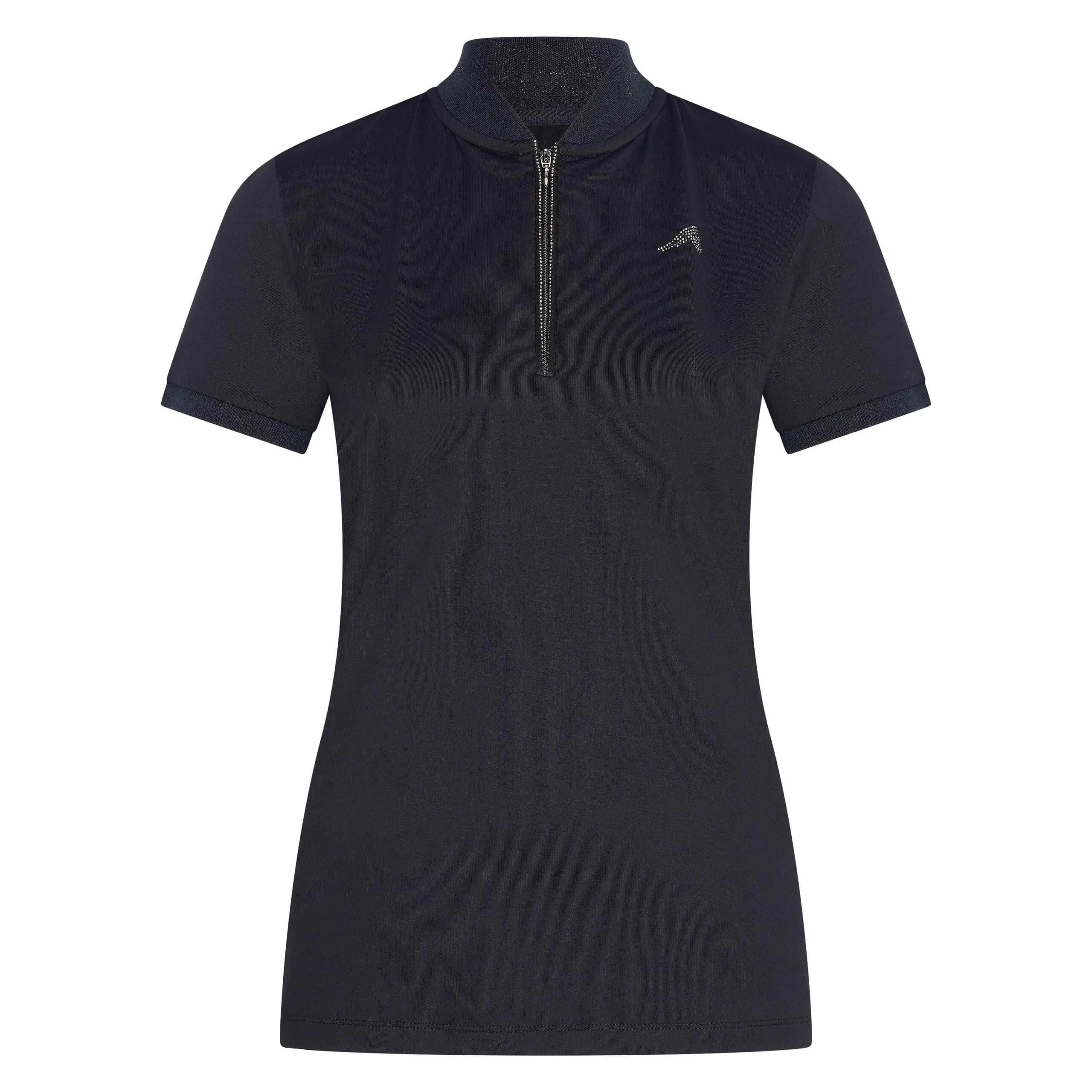 Sneldrogende en ademende stof * Getailleerde stijl * Voorsluiting met rits * Rib kraag met lurex intarsia * Rib manchetten met lurex buitenkant * Strass paardenhoofd logo op linkerborst