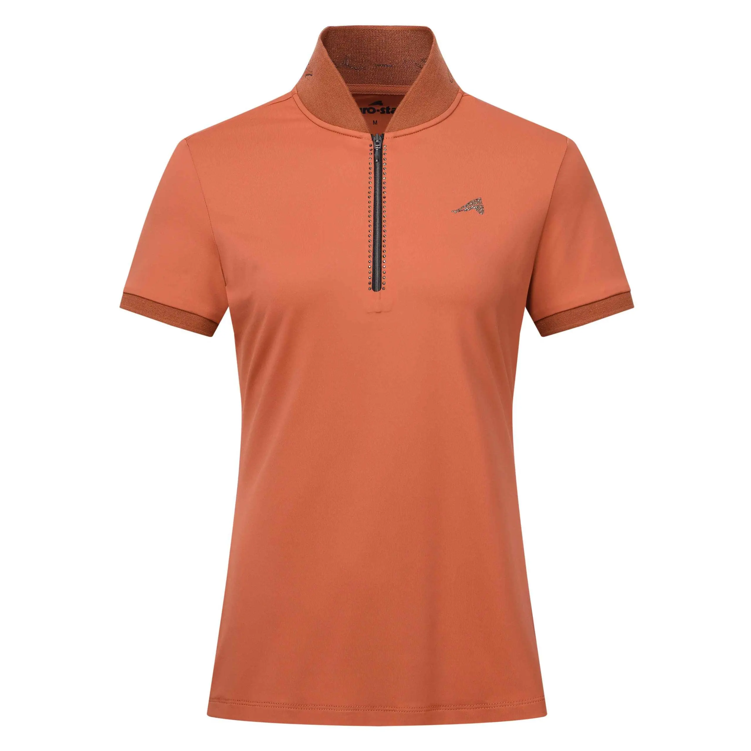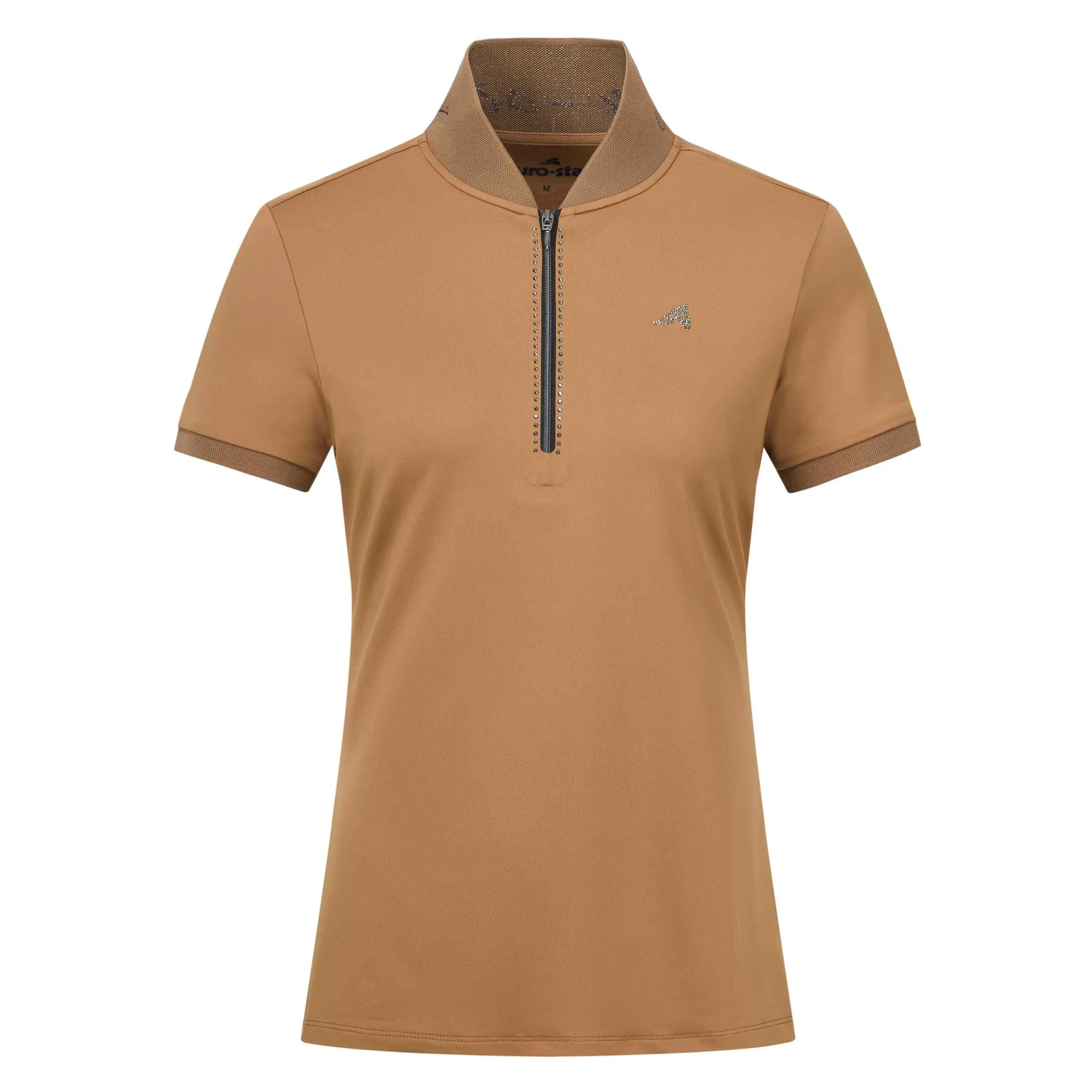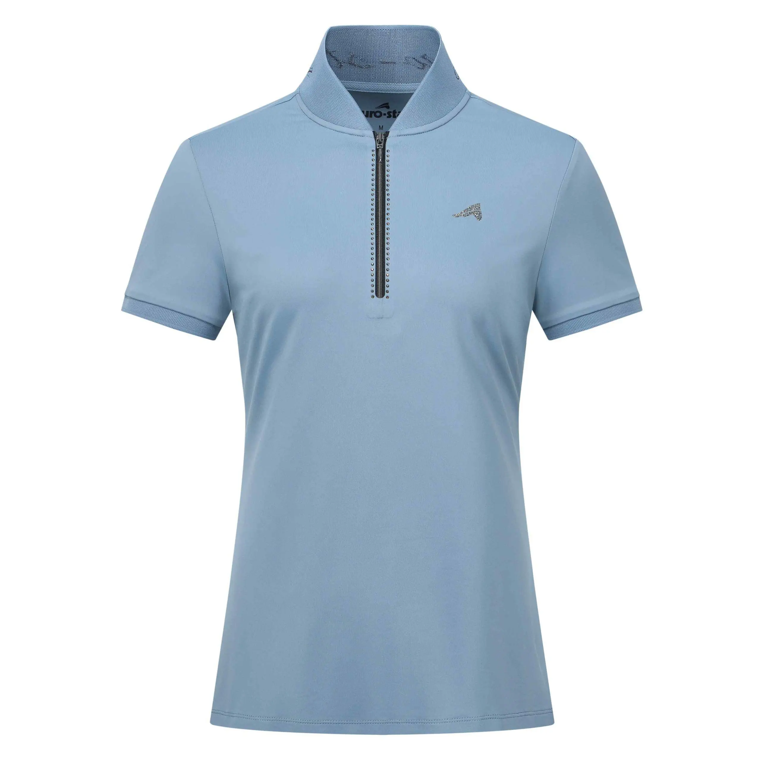 Sneldrogende en ademende stof * Getailleerde stijl * Voorsluiting met rits * Rib kraag met lurex intarsia * Rib manchetten met lurex buitenkant * Strass paardenhoofd logo op linkerborst