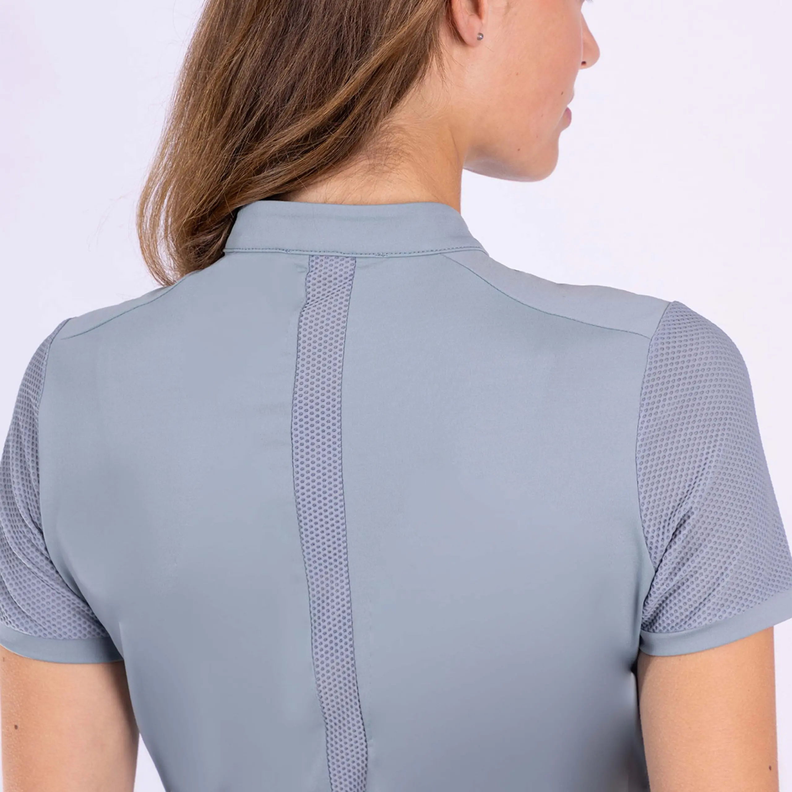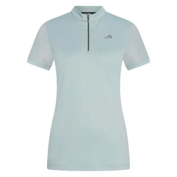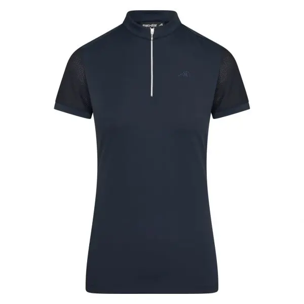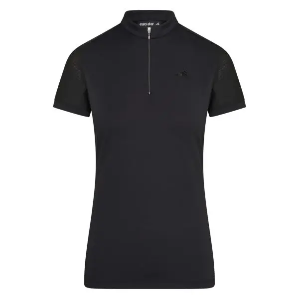 โขSneldrogende en luchtdoorlatende stof โขRegular fit โขSterk ventilerend gaas op de mouwen en CB-deel โขVoorste sluiting met rits โขHoge kraag โขPaardenhoofdversiering links op de borst