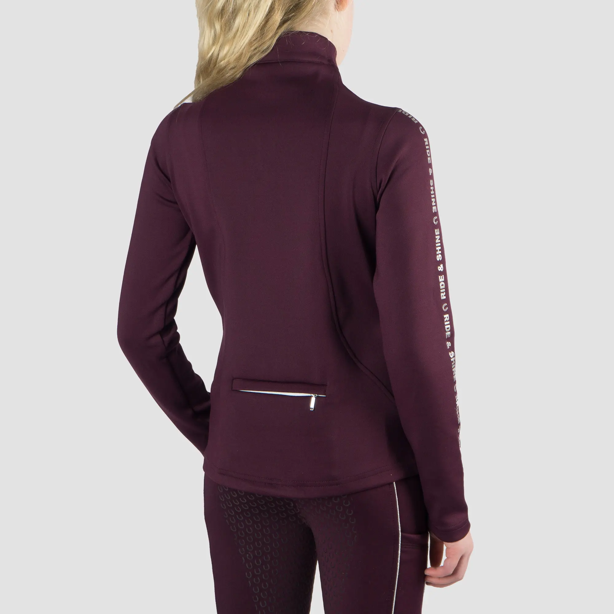 Trainingsshirt met kleine opstaande kraag, subtiele rosรฉgouden of zilveren rits en artwork op mouwen en borst.