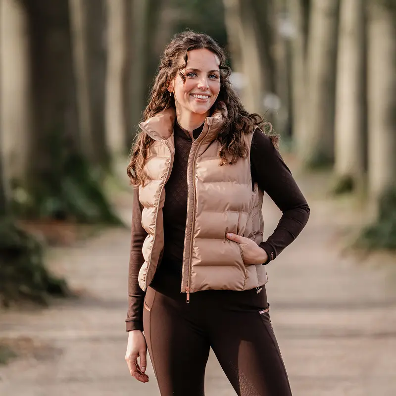 Bodywarmer Daphne is ontworpen met waterdichte materialen en gelamineerde naden. De rosรฉgouden details en het rubberen glitter artwork geven deze bodywarmer een stijlvolle look.