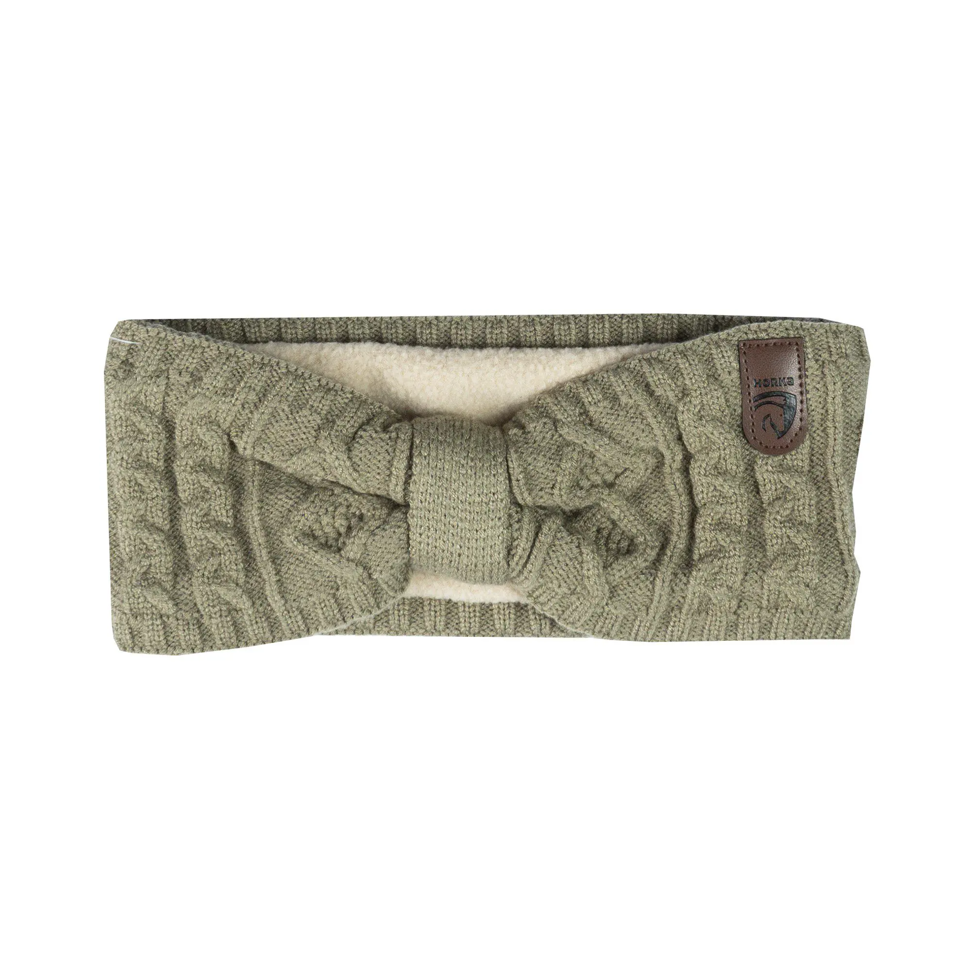 Gebreide hoofdband met fleece gevoerd en overlappende voorkant.