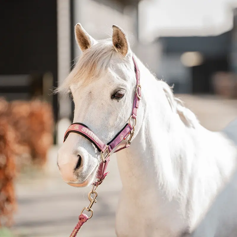 Stevige nylon halsterset met champagnekleurige metalen gespen, voorzien van een neopreen gevoerd kopstuk, neusriem en bakstukken voor extra comfort. Het verstelbare kopstuk en de neusriem zorgen voor een goede pasvorm. Inclusief een 200 cm halstertouw met sterke karabijnhaak. Productspecificaties: – Stevig nylon halster inclusief 200 cm halstertouw – Neopreen gevoerd kopstuk, neusriem en bakstukken – Verstelbaar kopstuk (2 zijden) en neusriem – Sterke karabijnhaak – Champagnekleurige metalen gespen en bedrukt artwork Materiaal:ย PP nylon en polyester, metalen gespent |