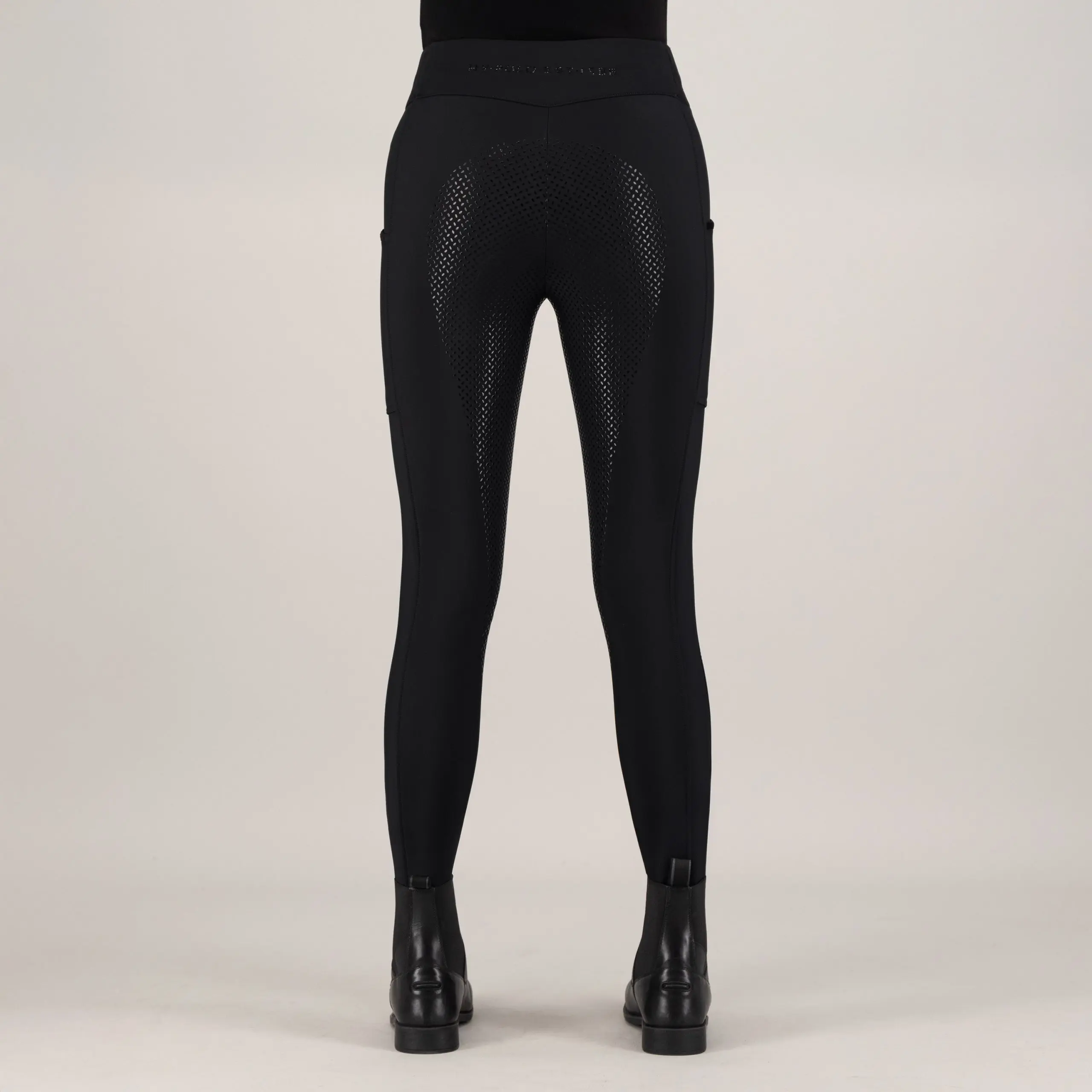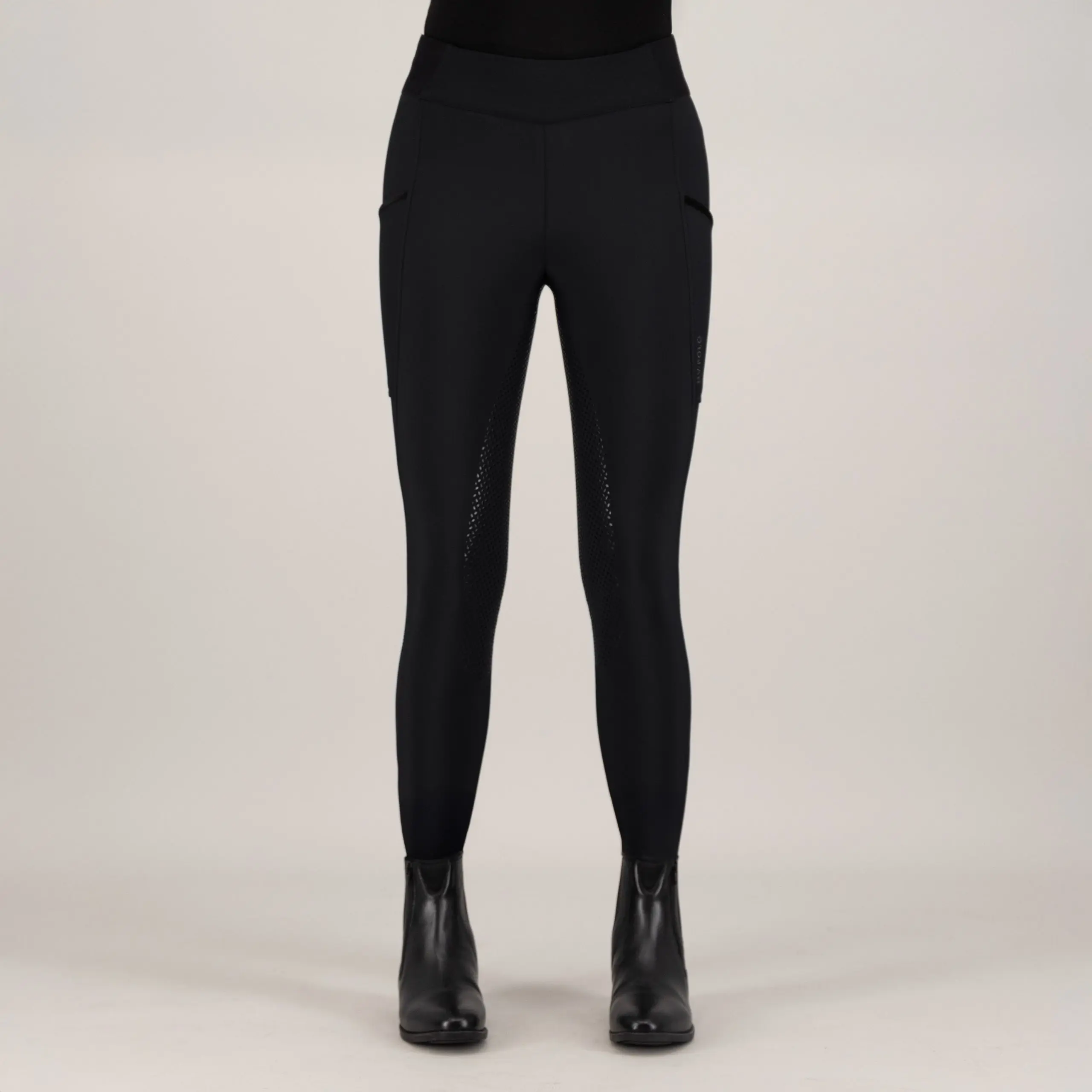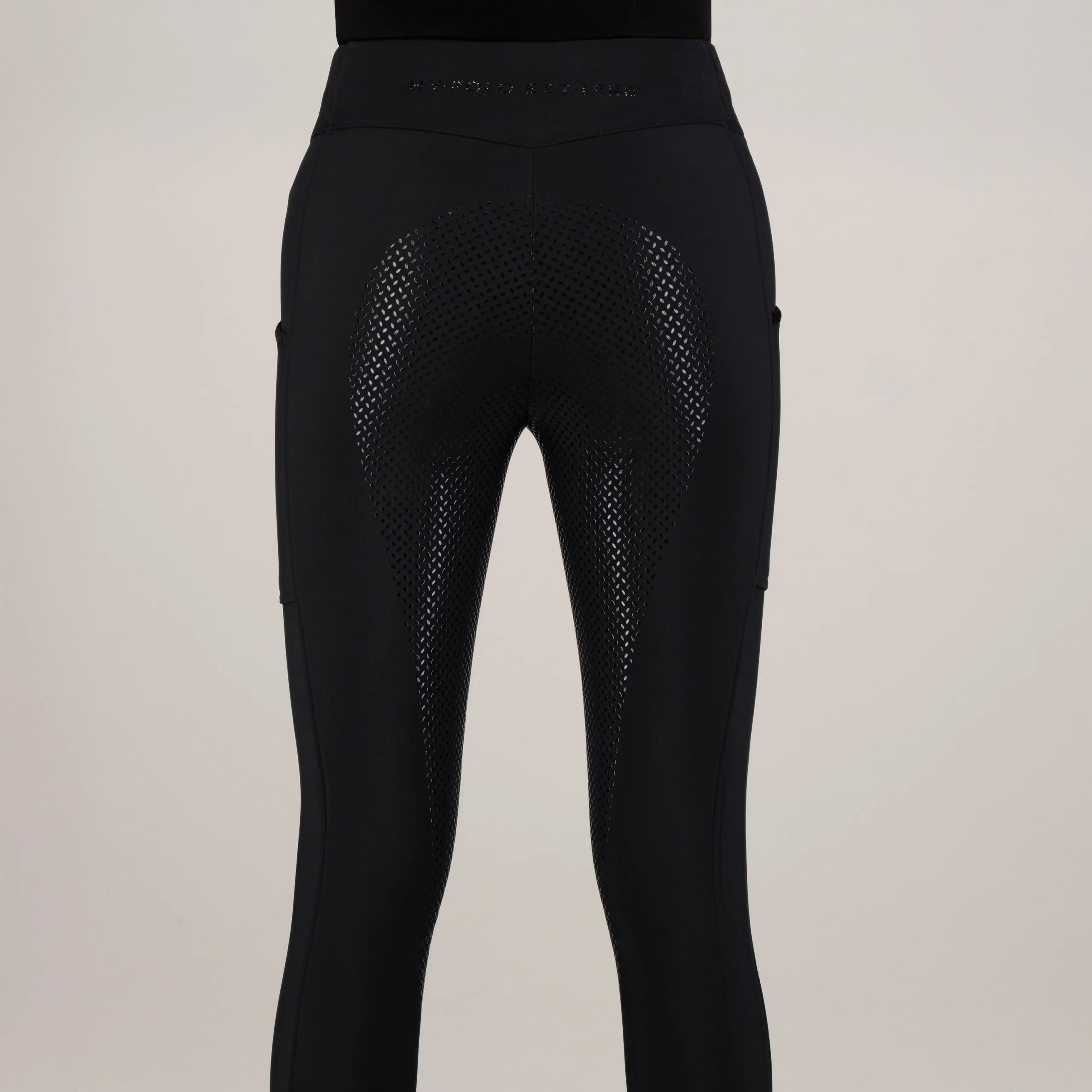 Stel je eens voor: die perfecte rijlegging die niet alleen fantastisch aanvoelt, maar je ook nog eens laat stralen in de stallen en tijdens elke rit. De HVP-Estrelle FullGrip rijlegging is precies dat! Deze rijlegging combineert moeiteloos functionaliteit met een elegante look, helemaal in de stijl van HV Polo. Dankzij de elastische inzetstukken in de tailleband zit hij als gegoten, en het HV Polo logo dat hierin is verwerkt, geeft een subtiele knipoog naar jouw passie voor de paardensport. Of je nu bezig bent met dressuur, een sprongetje waagt of gewoon geniet van een ontspannen buitenrit, de siliconen fullgrip zorgt voor optimale stabiliteit in het zadel. Aan beide zijkanten vind je handige telefoonzakken, perfect om je essentials bij de hand te houden. De linkse zak is zelfs verfraaid met een HV Polo paardenprint en sprankelende studs, terwijl een verfijnd strass-kunstwerk op de achterkant van de tailleband een vleugje glamour toevoegt. De stof is heerlijk zacht en geborsteld aan de binnenkant, super rekbaar en biedt daardoor ultiem comfort voor elke ruiter.