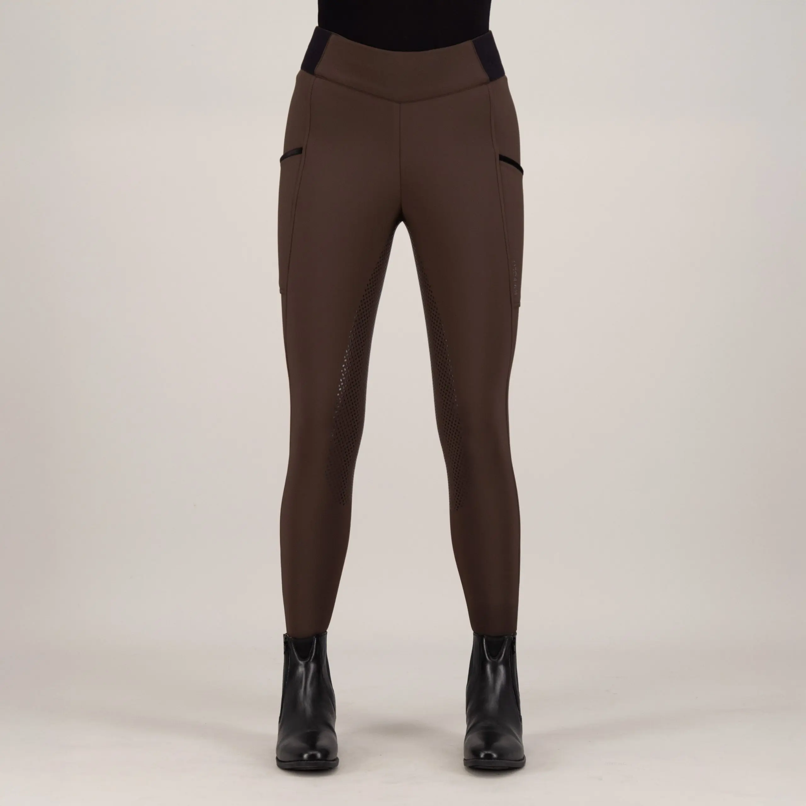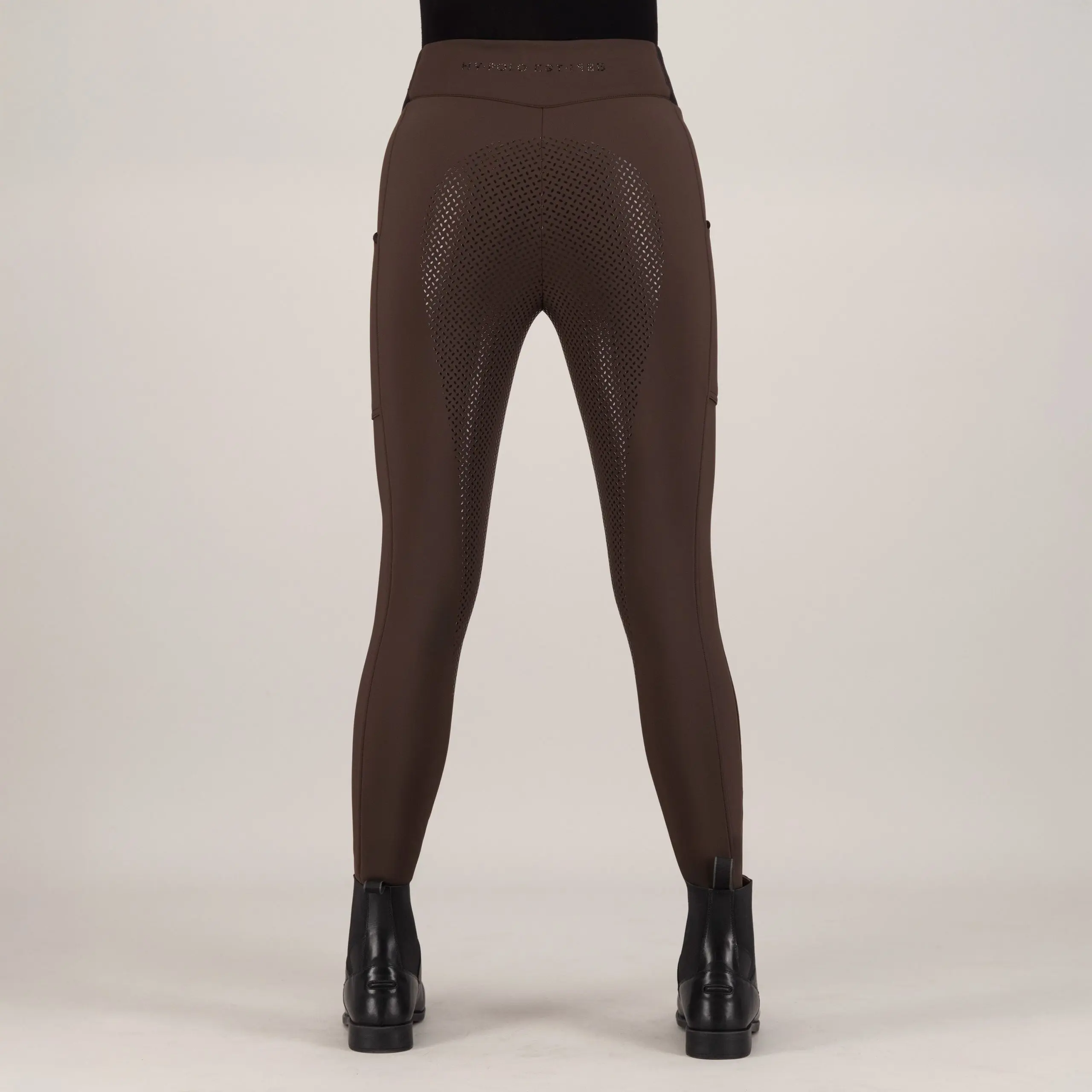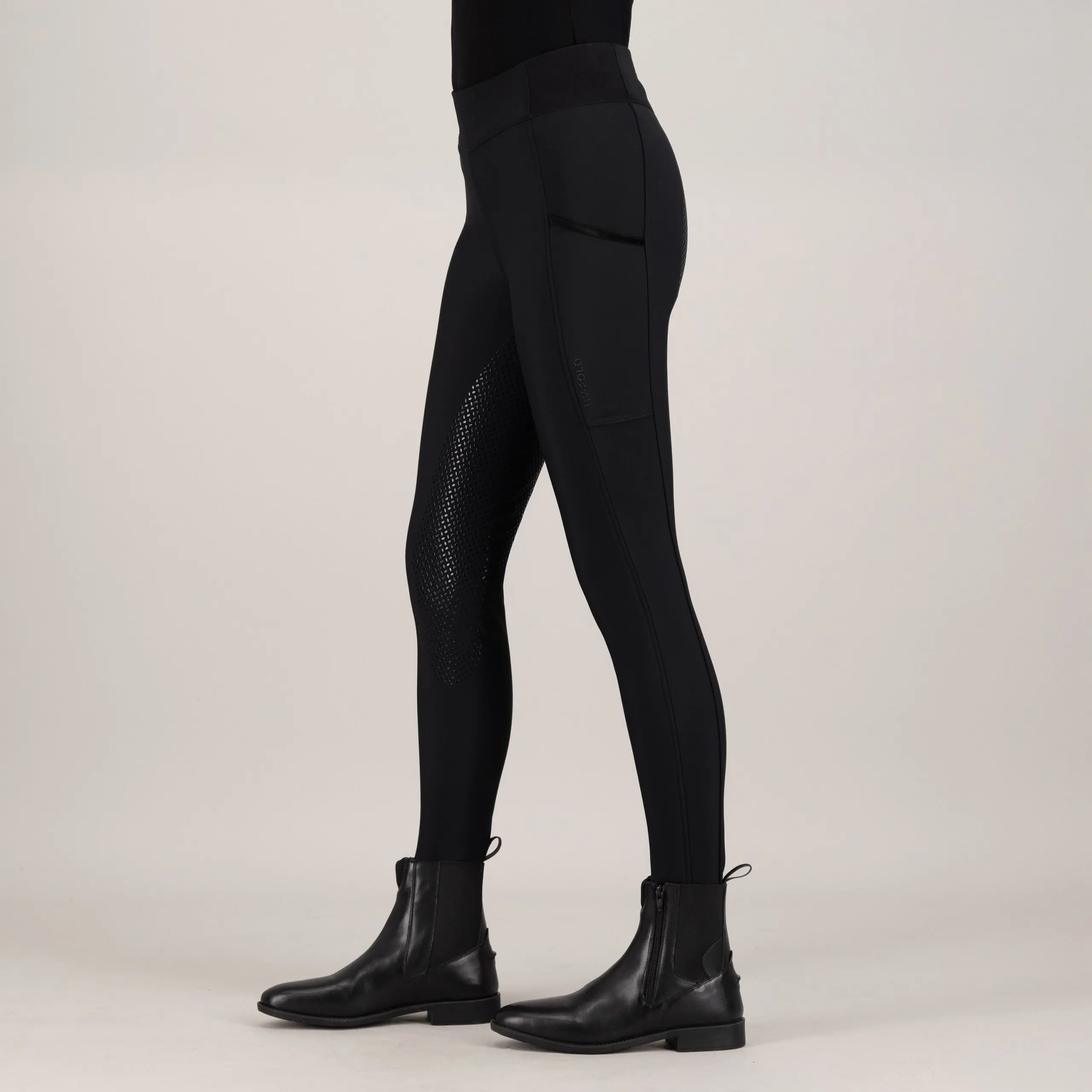 Stel je eens voor: die perfecte rijlegging die niet alleen fantastisch aanvoelt, maar je ook nog eens laat stralen in de stallen en tijdens elke rit. De HVP-Estrelle FullGrip rijlegging is precies dat! Deze rijlegging combineert moeiteloos functionaliteit met een elegante look, helemaal in de stijl van HV Polo. Dankzij de elastische inzetstukken in de tailleband zit hij als gegoten, en het HV Polo logo dat hierin is verwerkt, geeft een subtiele knipoog naar jouw passie voor de paardensport. Of je nu bezig bent met dressuur, een sprongetje waagt of gewoon geniet van een ontspannen buitenrit, de siliconen fullgrip zorgt voor optimale stabiliteit in het zadel. Aan beide zijkanten vind je handige telefoonzakken, perfect om je essentials bij de hand te houden. De linkse zak is zelfs verfraaid met een HV Polo paardenprint en sprankelende studs, terwijl een verfijnd strass-kunstwerk op de achterkant van de tailleband een vleugje glamour toevoegt. De stof is heerlijk zacht en geborsteld aan de binnenkant, super rekbaar en biedt daardoor ultiem comfort voor elke ruiter.