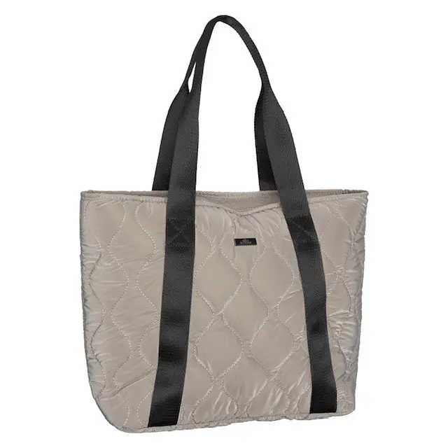 Metalen plaat met merknaam * Fraai quiltpatroon * Rits om de tas te sluiten * Handvat van satijnband * Onderhoudsvriendelijk en vlekbestendig materiaal
