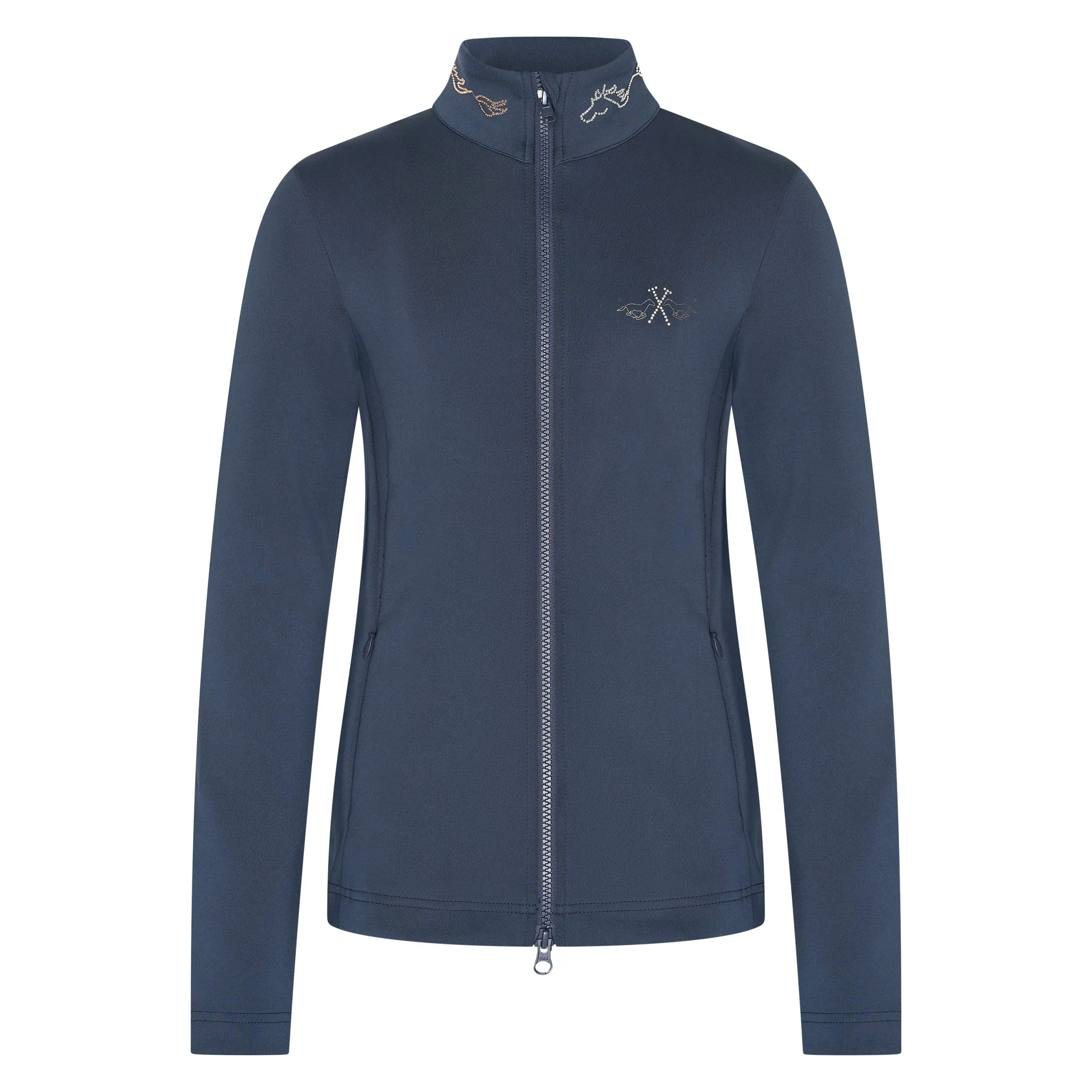 Cardigan in technische jersey-stof met tweewegritssluiting aan de voorkant * Boven aan de rits is een kinbeschermer * Kraag met strass-paarden * Op de borst is een artwork van geprinte paarden en strass steentjes * Op de voorkant zakken met blinde ritsen
