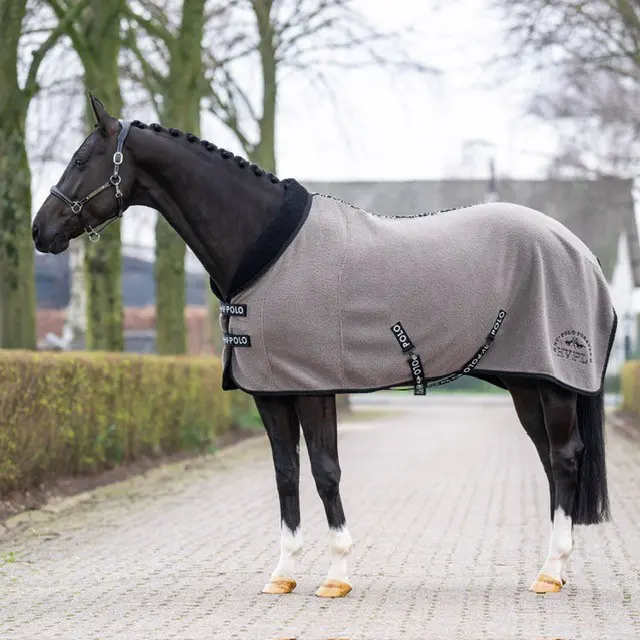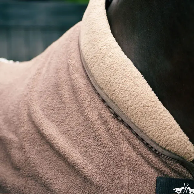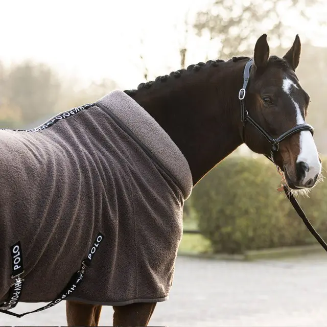 “Stay cozy and stylish in our teddy material horse blanket with a heavy stuffed collar. Featuring double T-lock closure, detachable X-singles, and HV Polo branding. Perfect for keeping your horse warm and looking fancy!”