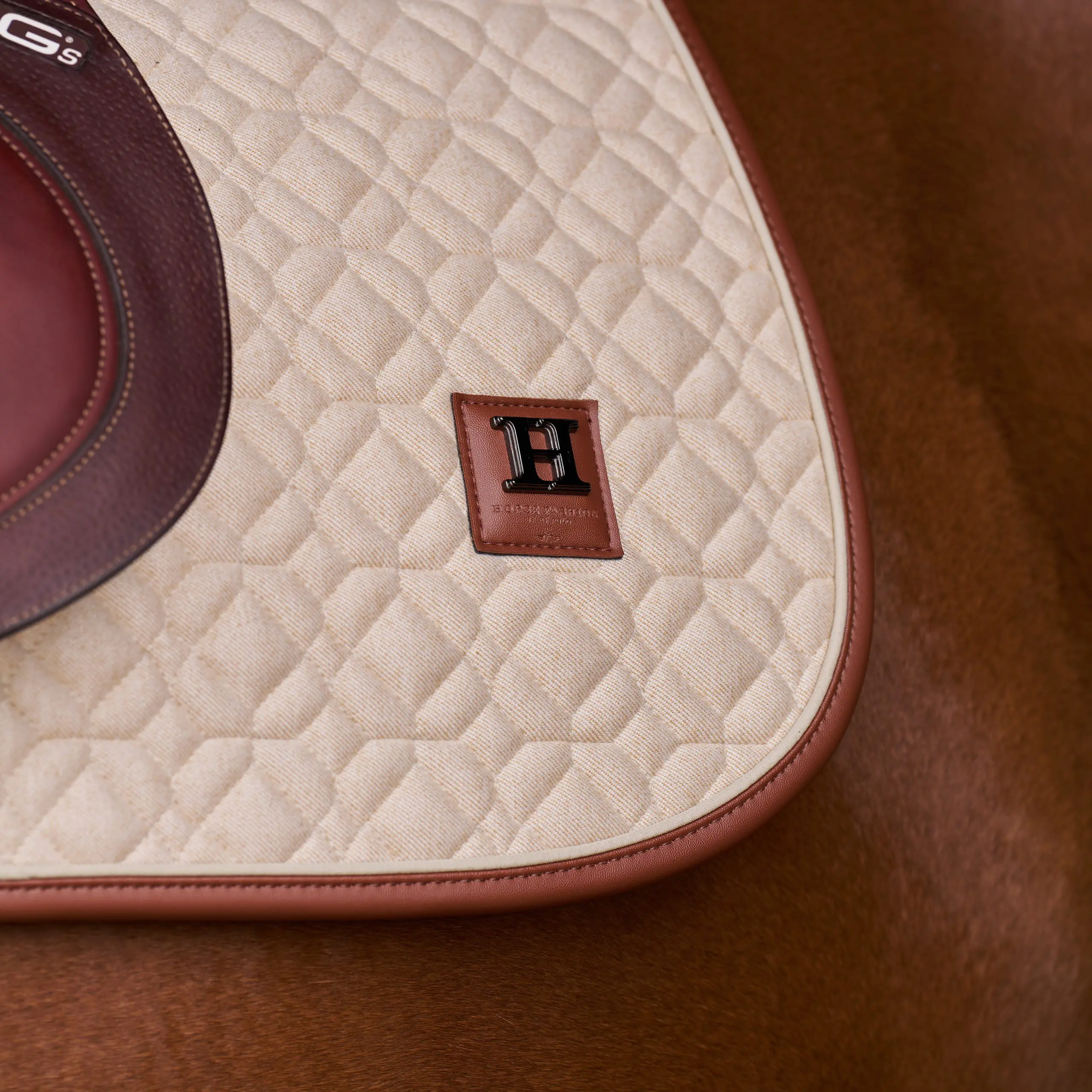 Gestructureerd HV Polo zadeldek met visgraatquilt, strasstenen bies en ademende katoenen voering