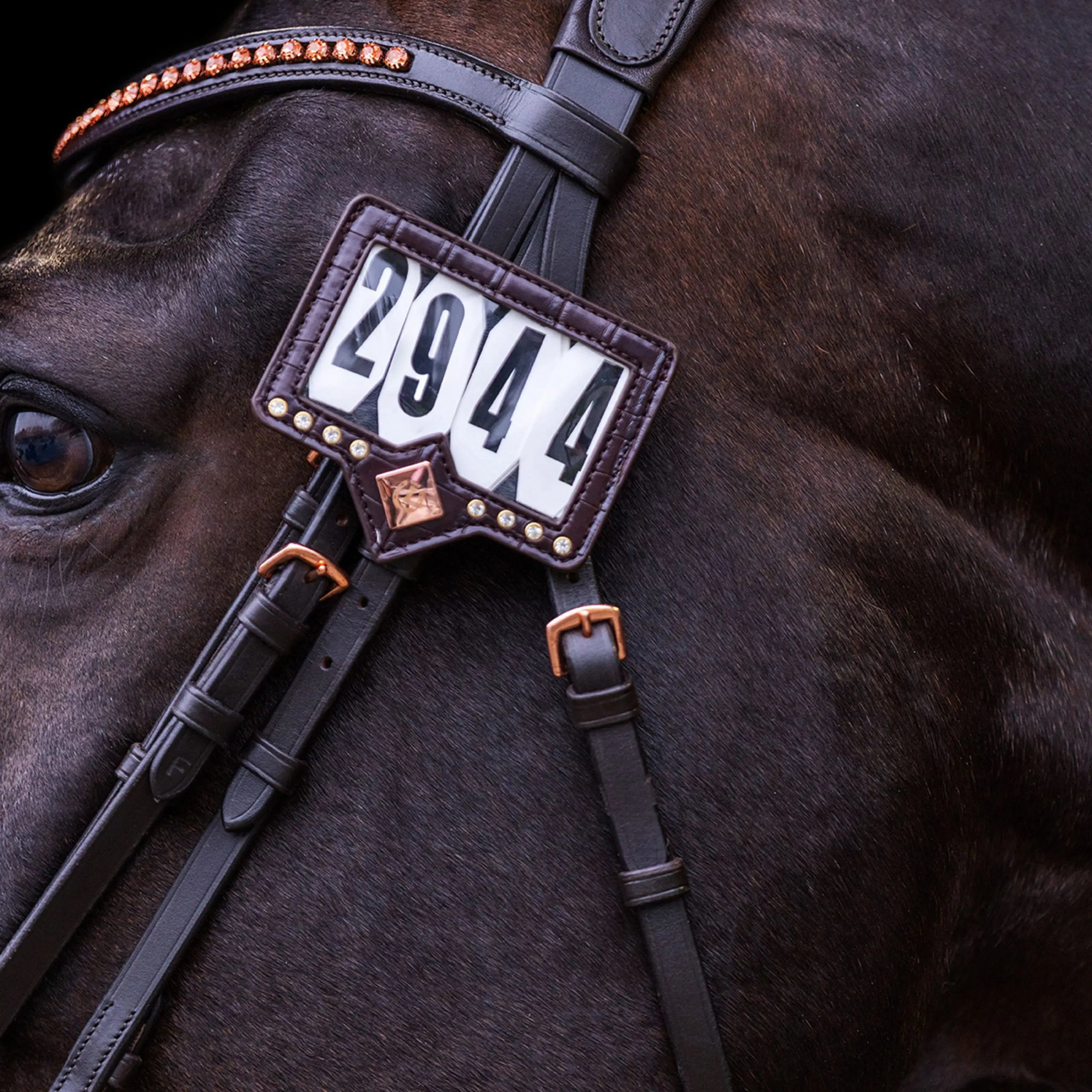 Bevestiging op Lovely zadeldek met klittenband * Bevestiging op regulier zadeldek met veiligheidsspeld * Bevestiging op hoofdstel met drukknoop * 4 cijfers * Croco afwerking * Kristallen * Magnetische sluiting aan de bovenkant