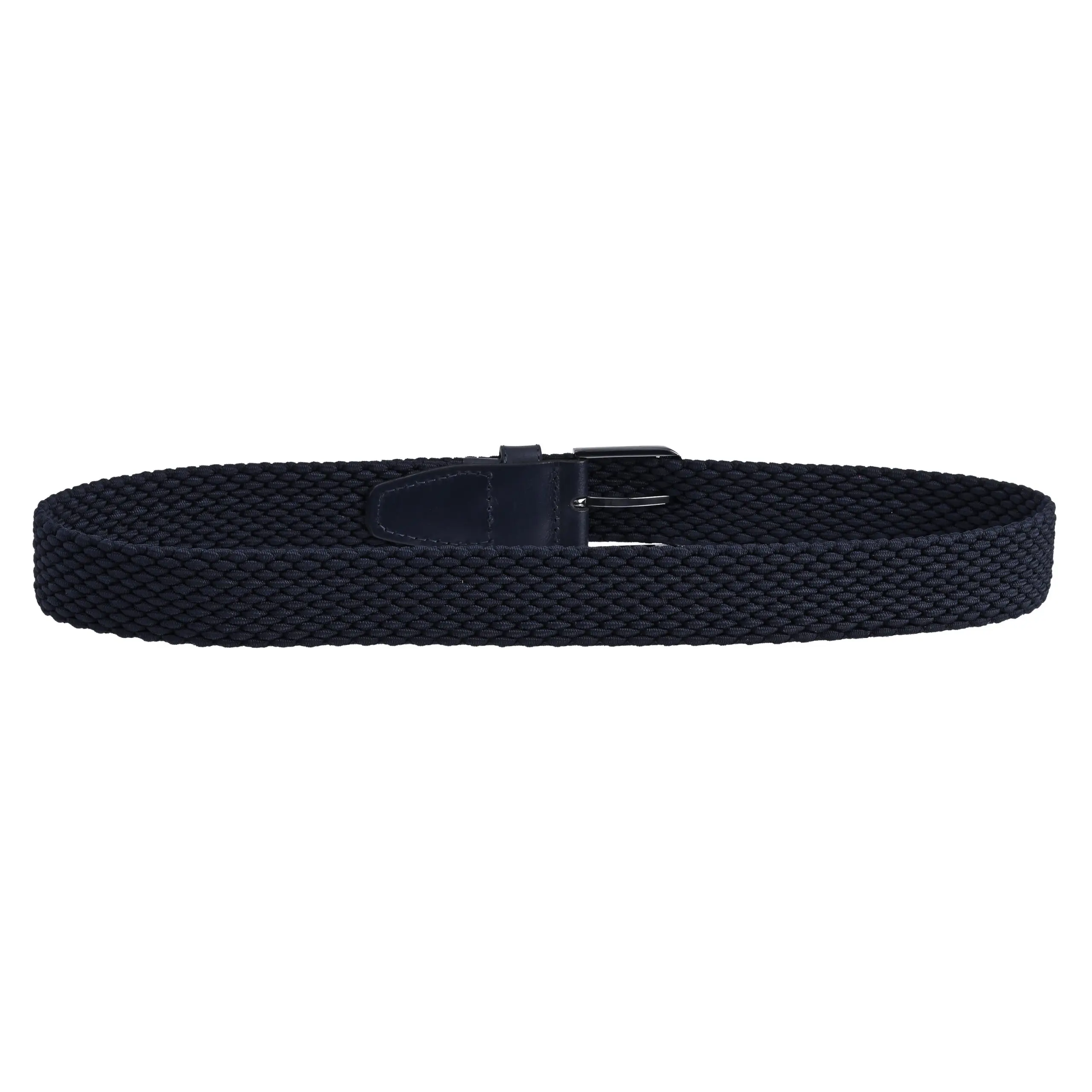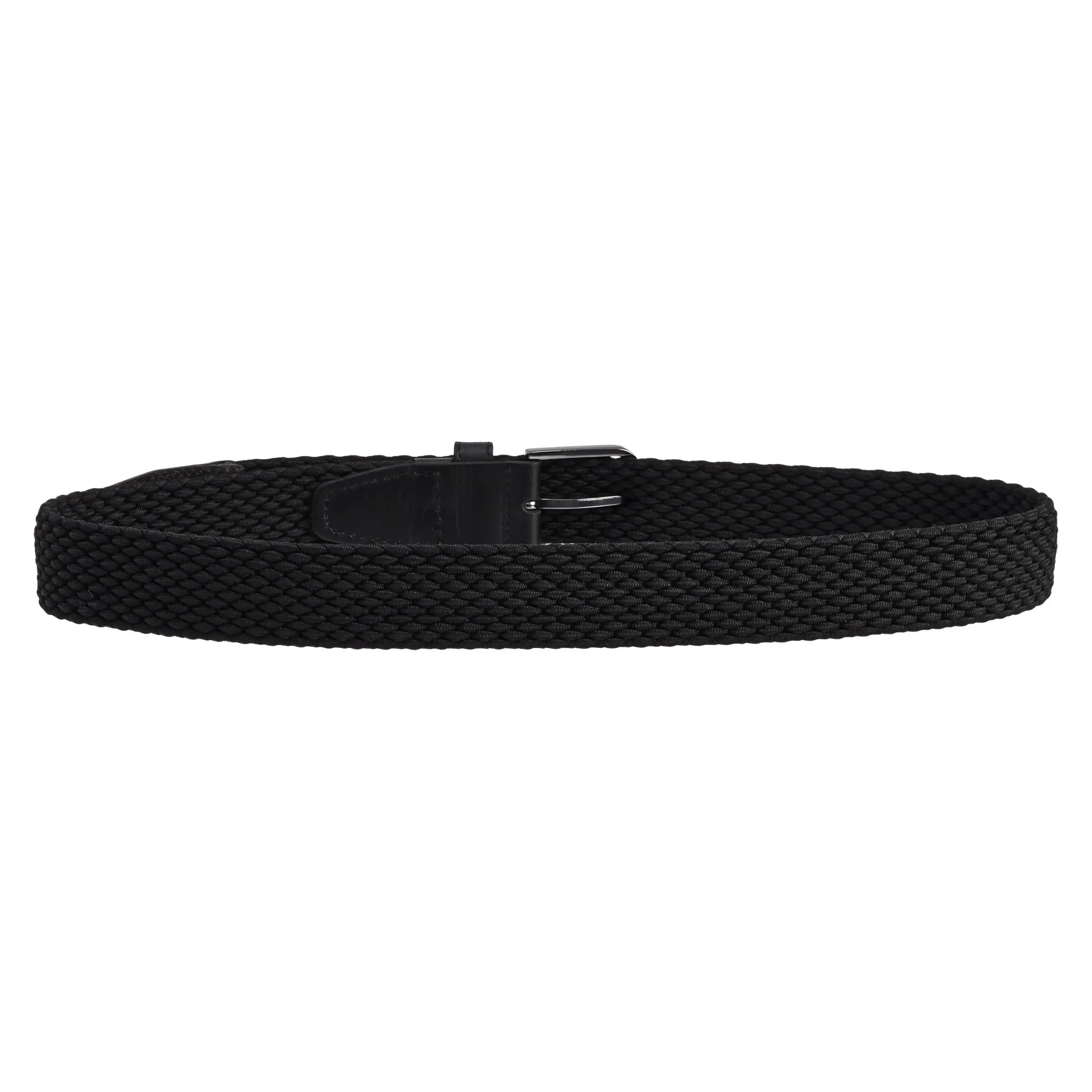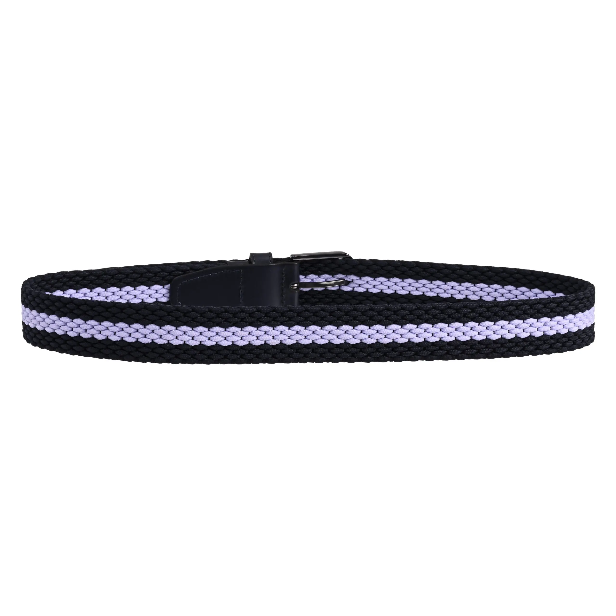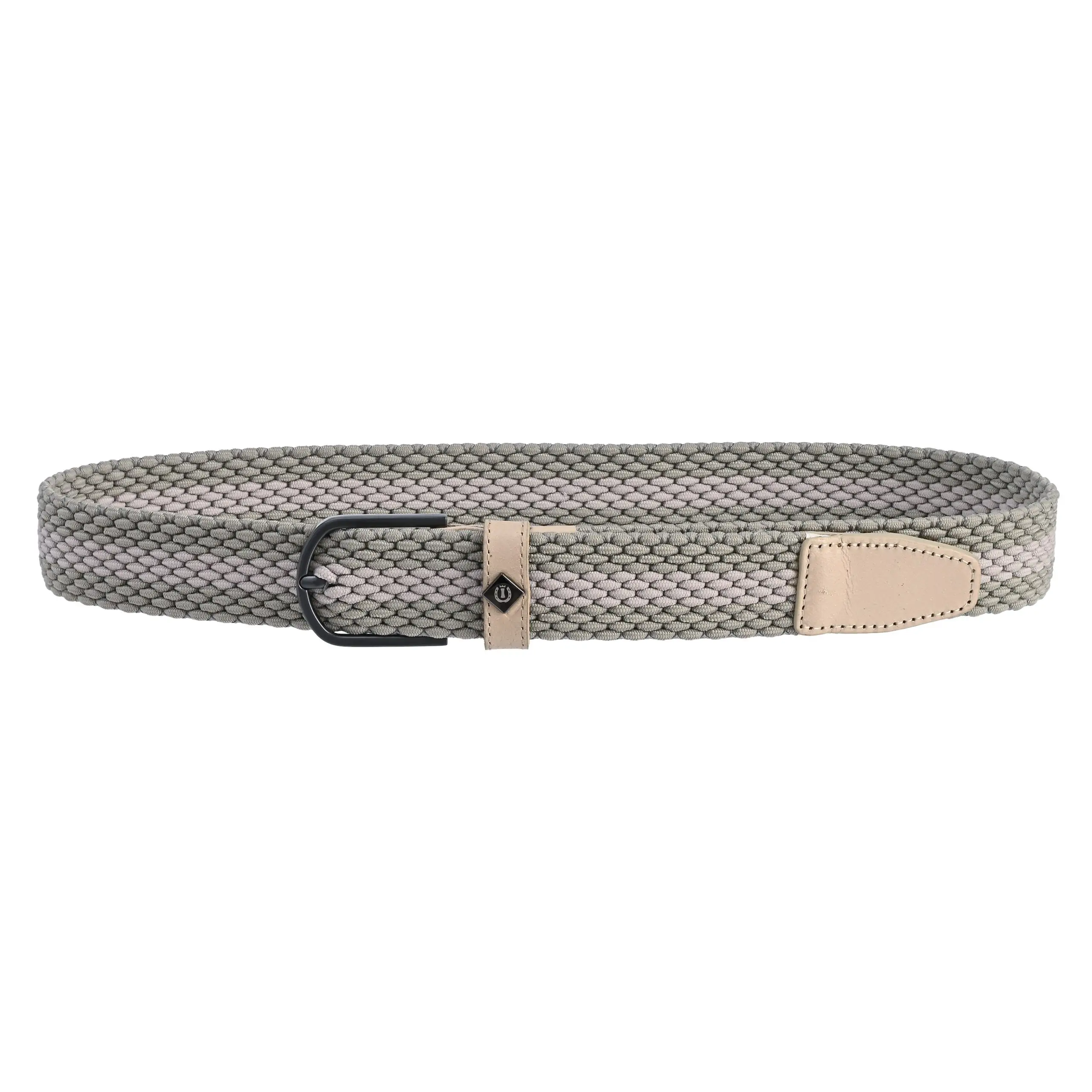 Glanzende Imperial Riding riem met elastisch comfort, opvallend horizontaal vlechtpatroon en metalen logo op de riemlus
