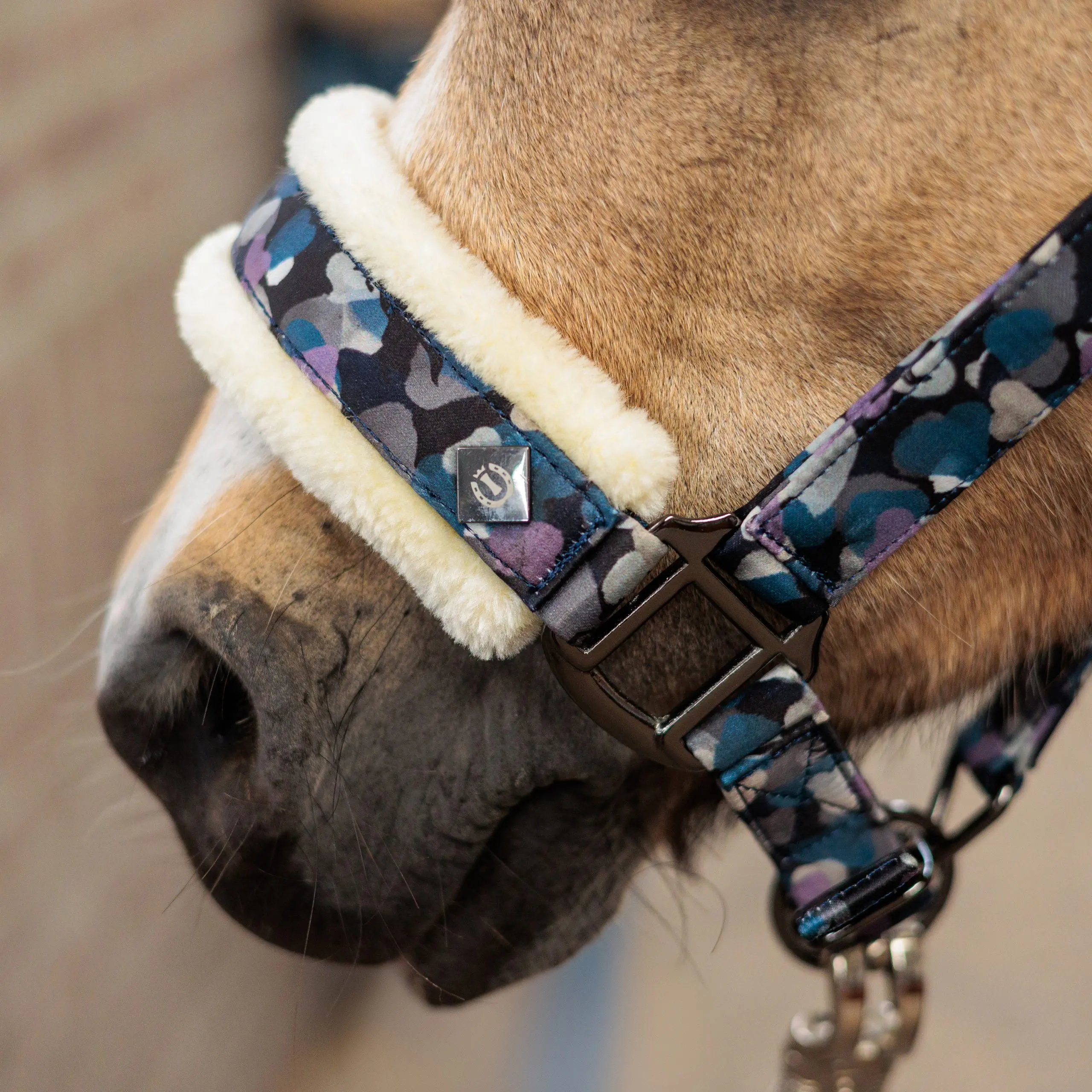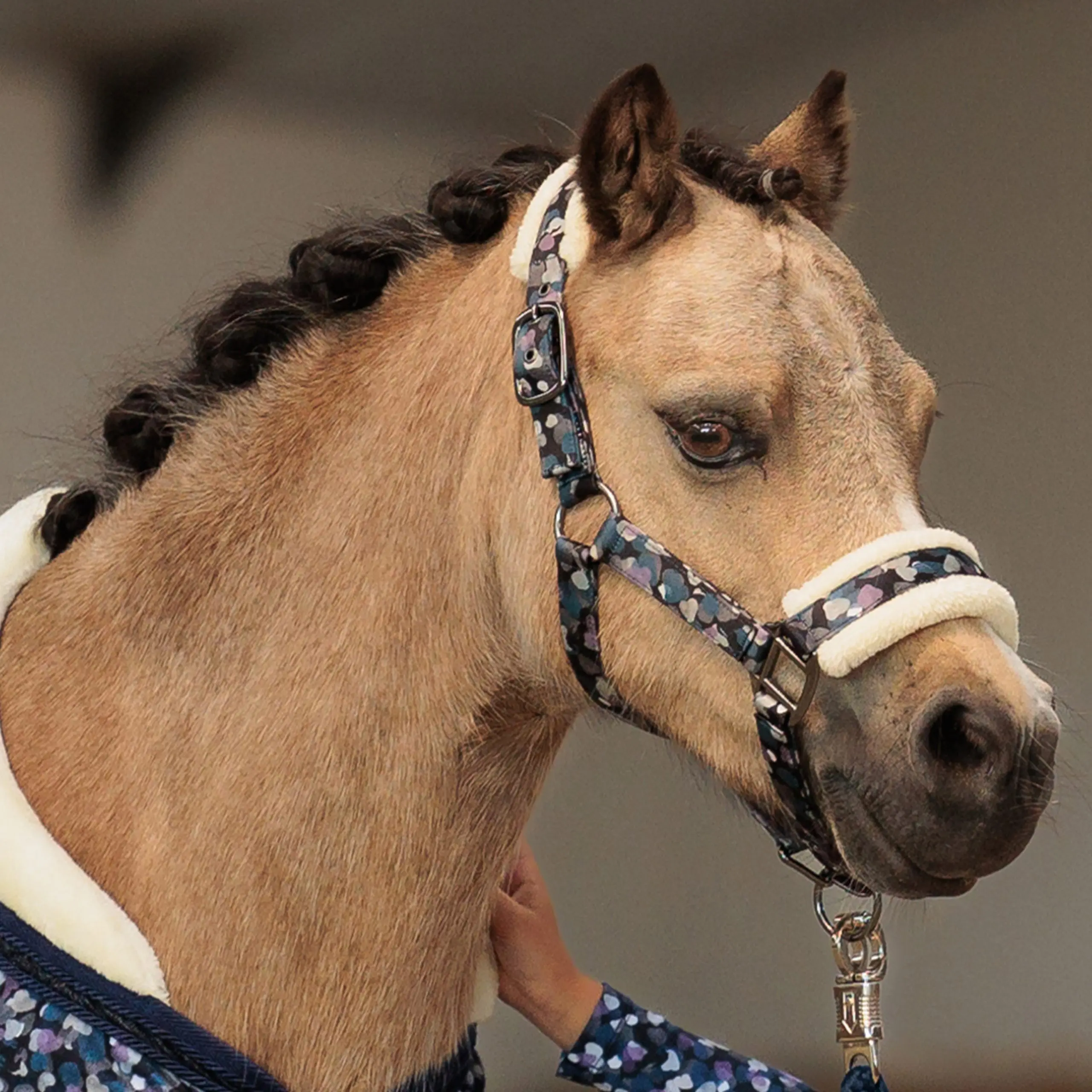 Schattig gevoerd halster met bont voor de kleintjes!ย  Het halster is versierd met ons logomuntstuk op de neusriem.