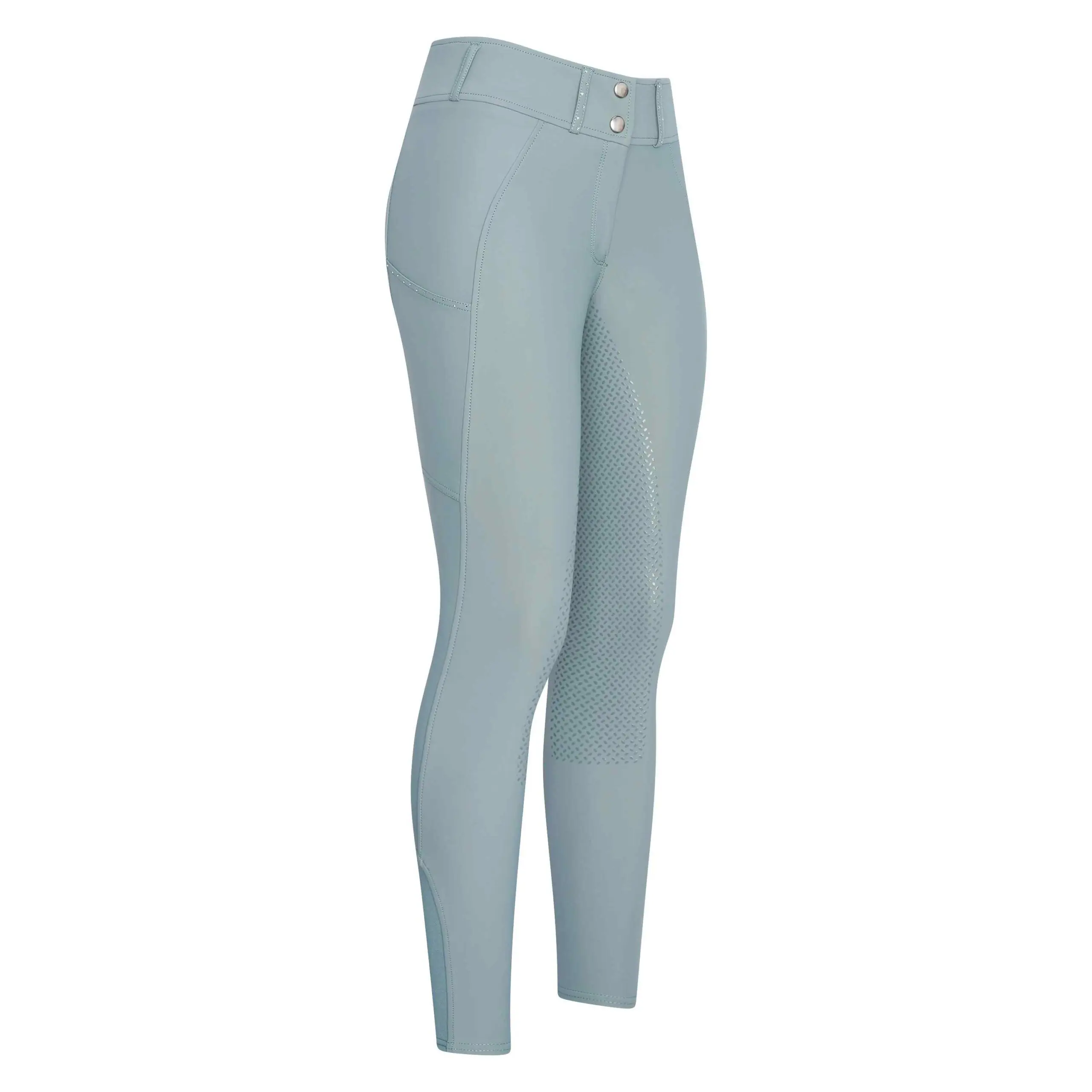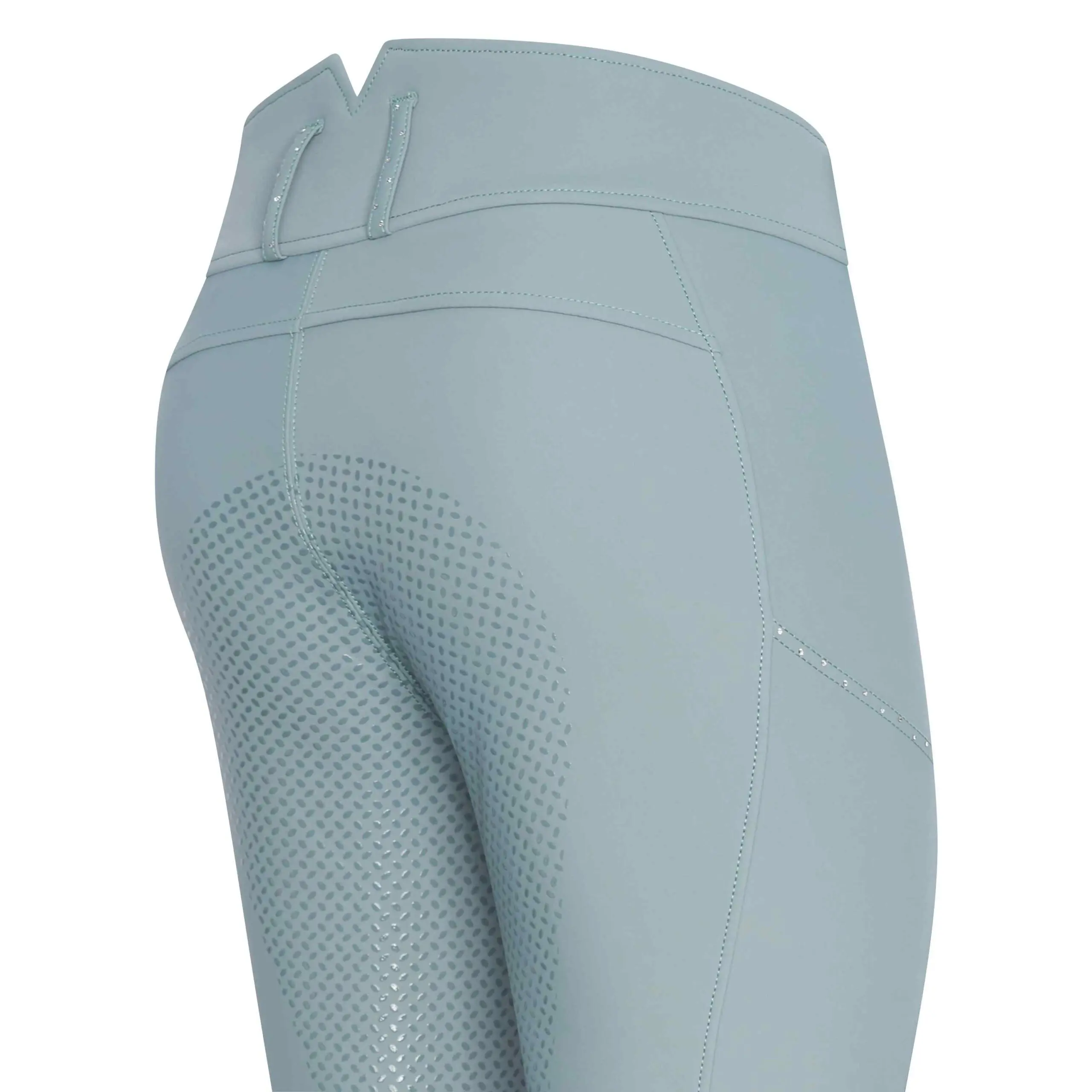 Rijbroek * 4 Way stretch * Hoge taille met gulp en 2 knopen * Riemlussen CF en CB met strass * 2 telefoonzakken met strass op de zak * Elastaan zoom inzetstukken * Siliconen zitvlak