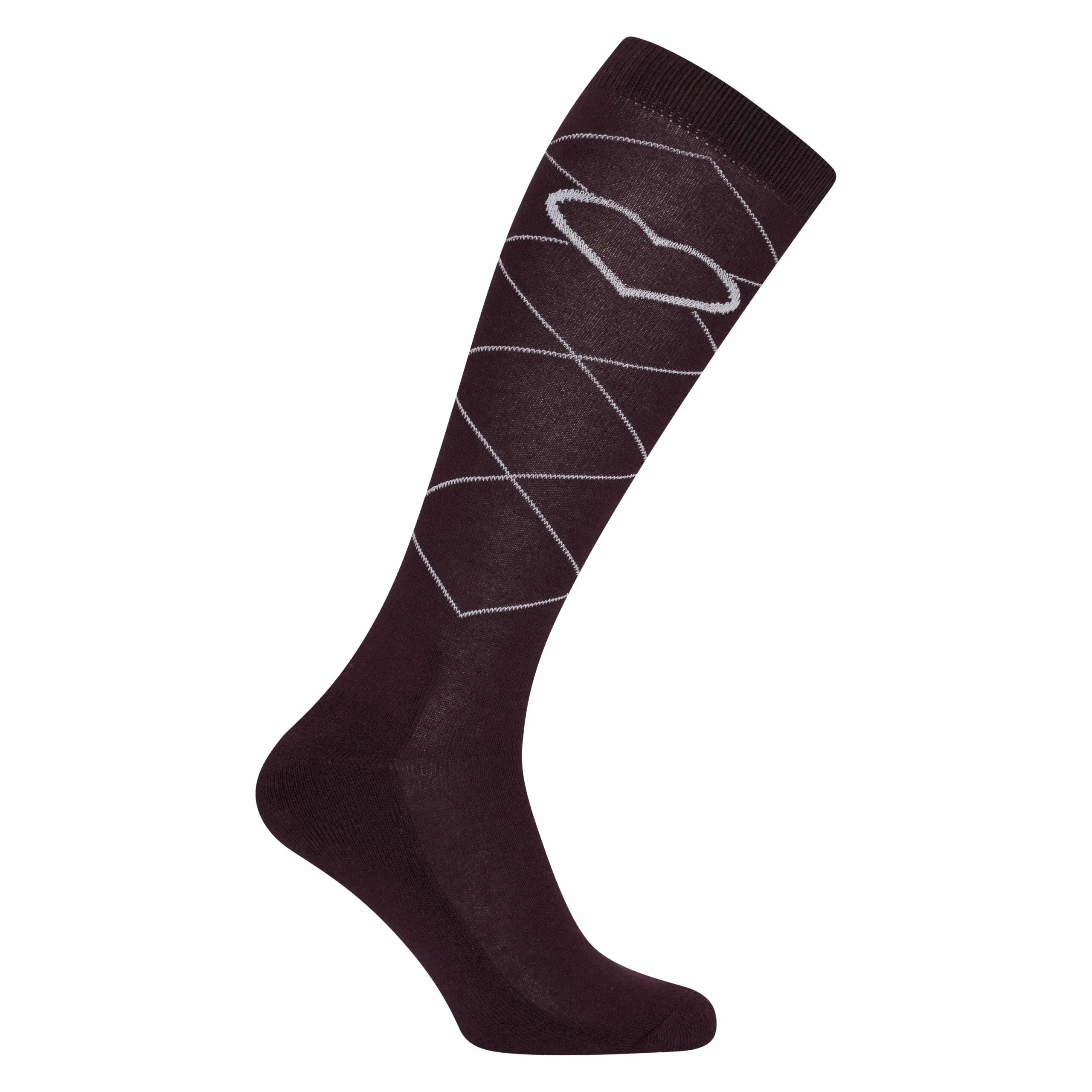 Houd je voeten op de grond en draag het hart van Imperial riding. Deze sokken hebben een iconisch argyle gebreid patroon van zilver lurex garen. Laat ze je hart zien!