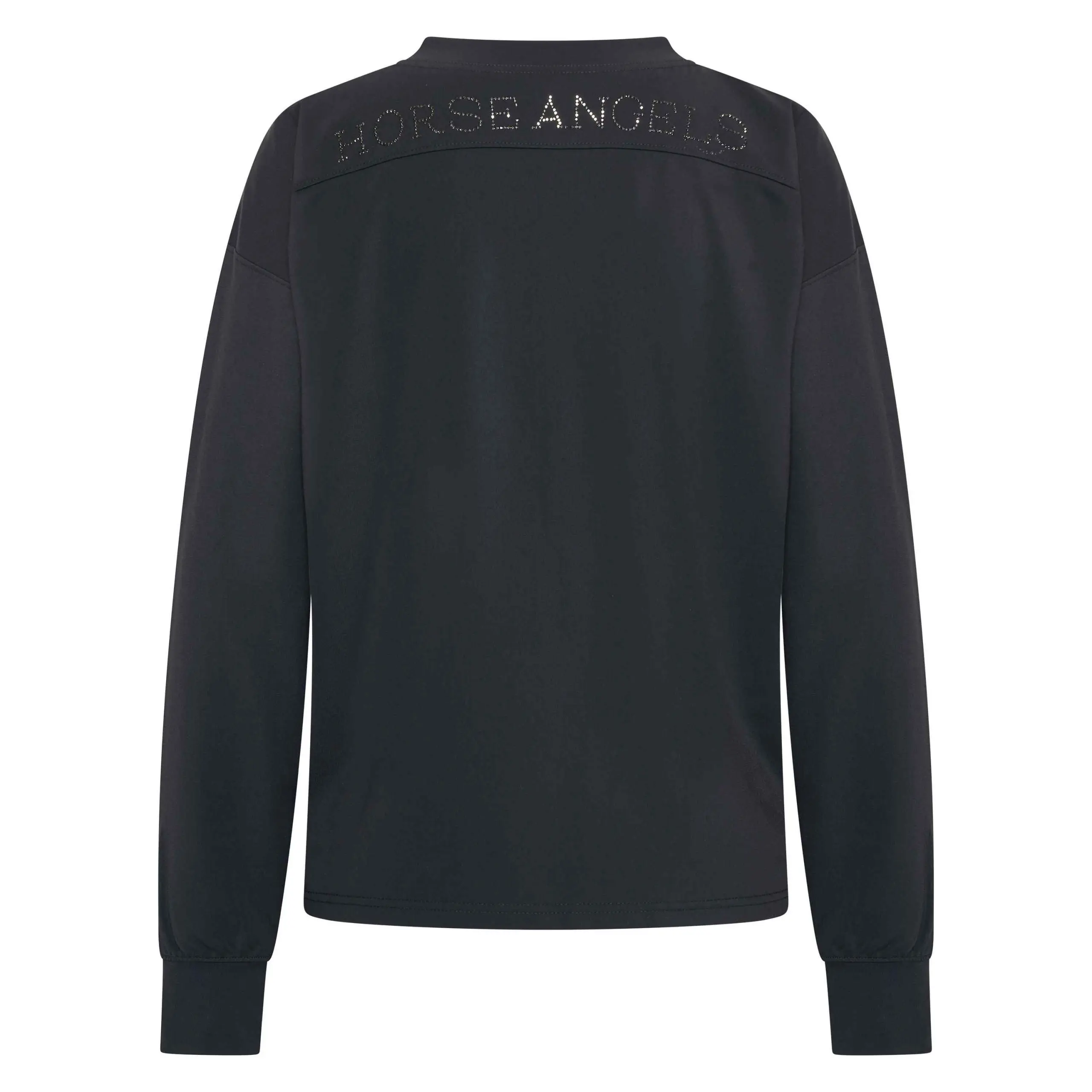 “Ik presenteer aan u de innovatieve trui gemaakt van gerecycled polyester. Met een ronde hals en een stijlvolle IMPERIAL RIDING opdruk op de voorkant, biedt deze trui een oversized pasvorm voor ultiem comfort. De lange mouwen met manchetten voegen een vleugje elegantie toe, terwijl de achterkant is versierd met een gebogen naad en prachtige HORSE ANGELS stenen kunstwerk. Blijf gezellig en modieus met deze milieuvriendelijke en opvallende trui.”