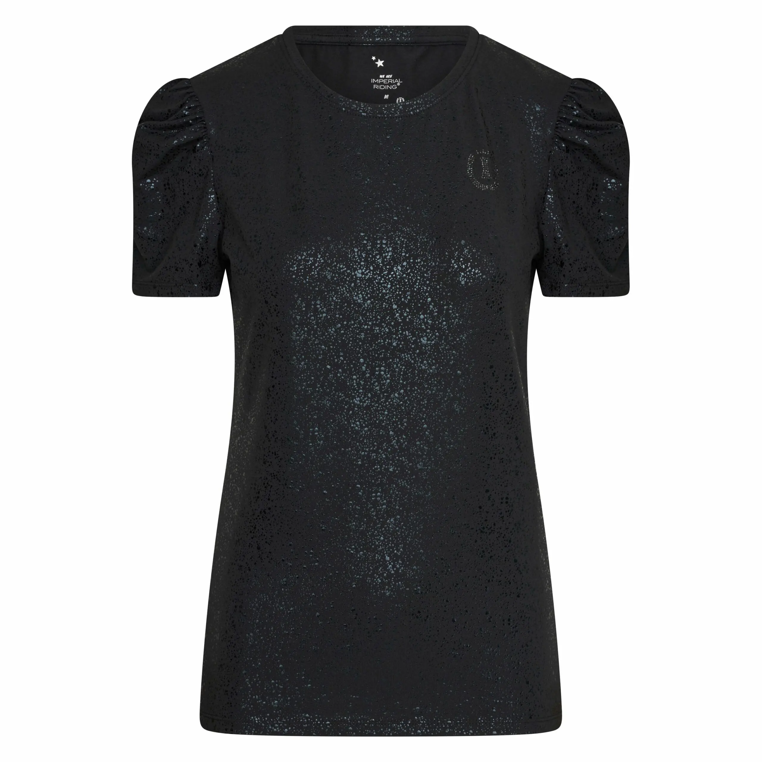 * Jersey top * Glanzende alloverprint * Ronde hals * Korte pofmouwen * Zilveren logoprint op de onderkant * Logo met strass-steentjes op de borst