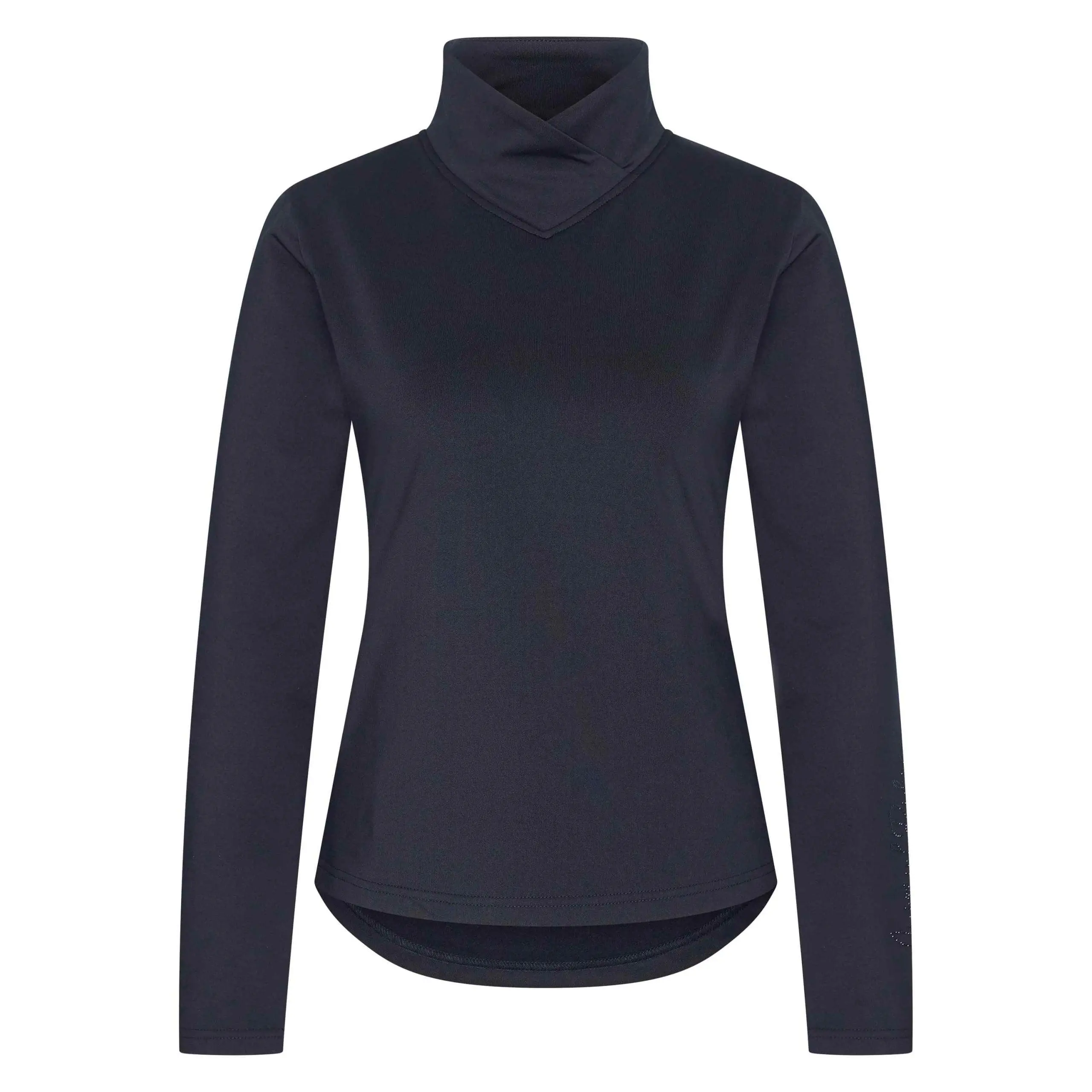 Lange mouwen dames top * Hoge kraagstand die zich kruist aan de voorkant * Op de linkermouw merknaam in tonale strass-steentjes * Techshell-stof die aan de binnenkant geborsteld is