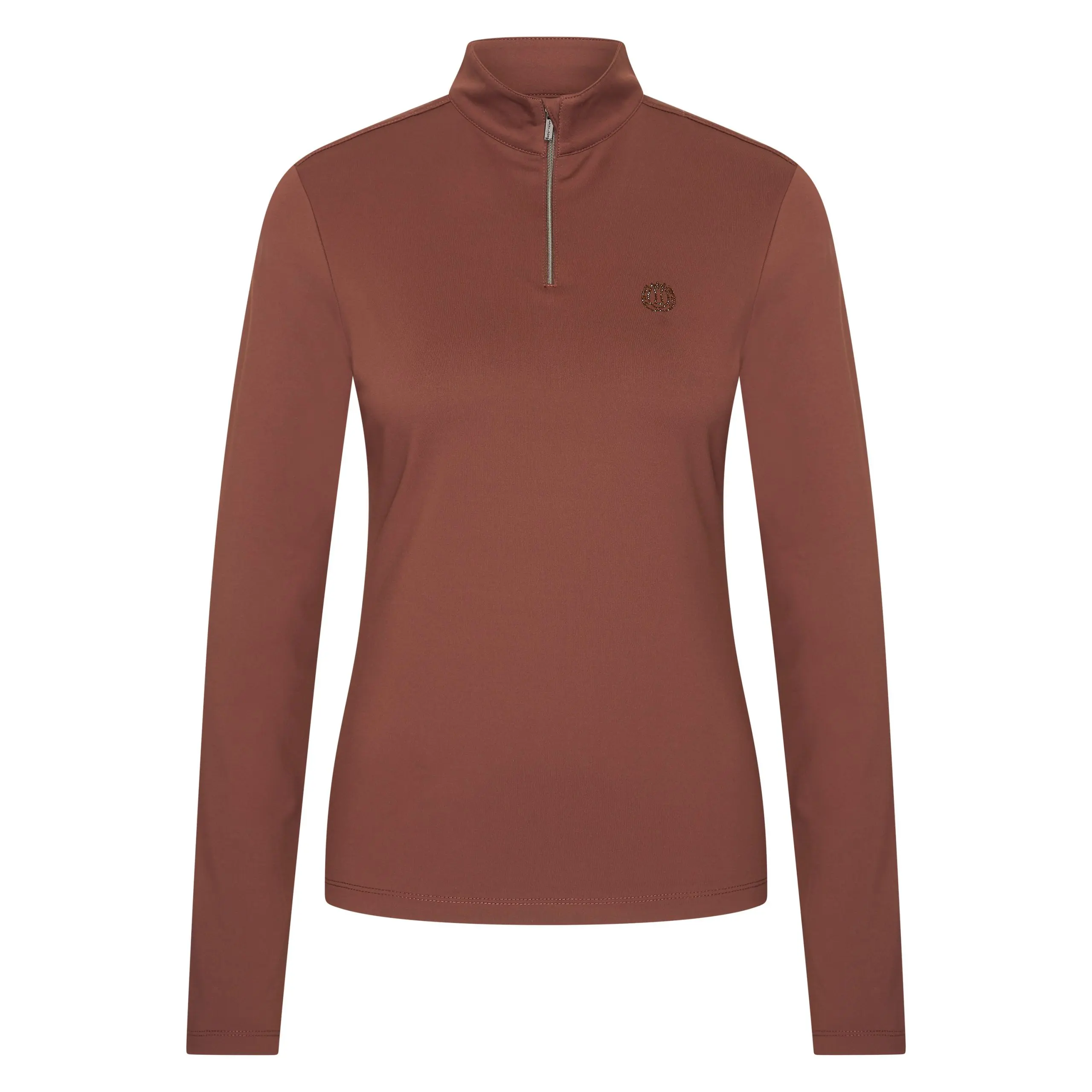 Dames lange mouw halfzip top met kraag, kinbeschermer, rekbaar, logoprint en geborsteld