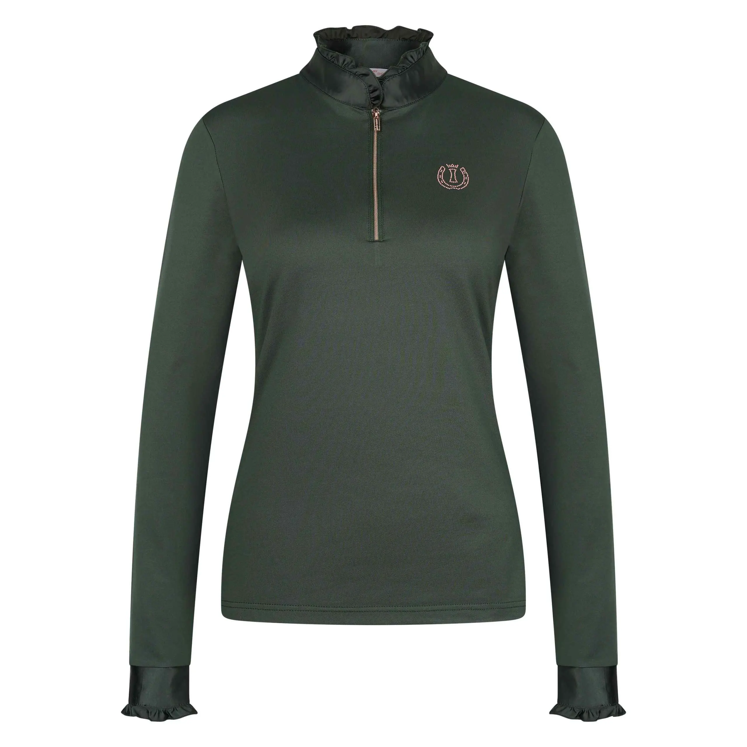 Tech top van jersey met halve rits * Zachte/opgeruwde binnenkant * Glanzende satijnen jersey panelen * Sneldrogend * Opstaande kraag met ruches * Lange mouwen * Manchetten met ruches * Rijnstud-logo op de borst * Merktrekker * Merked metalen bedeltje onderaan