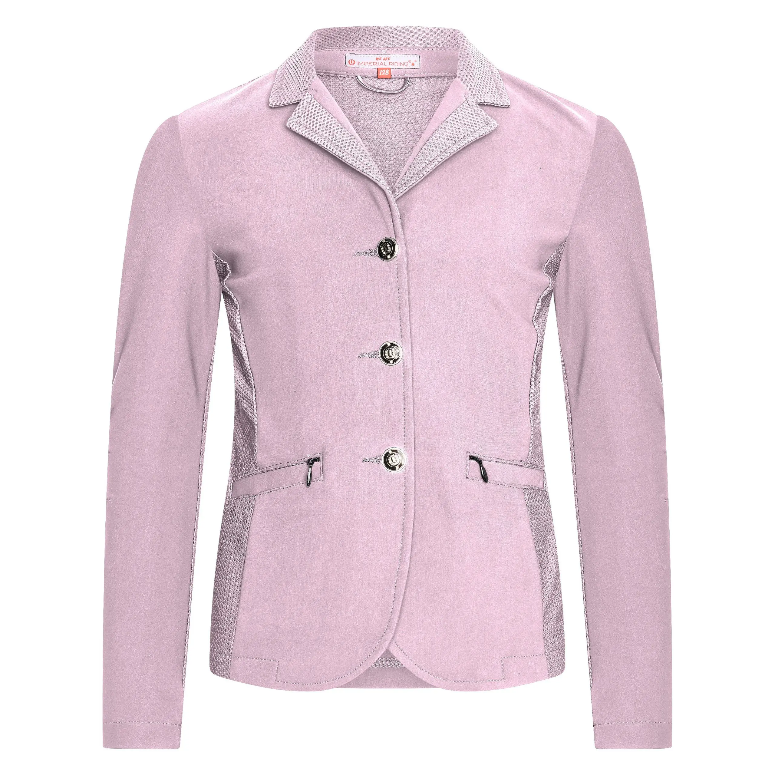 Wedstrijdblazer met afgedekte rits CF en 4 zichtbare metalen merkknopen * 4 Way stretch stof gecombineerd met mesh * 2 enkele paspelzakken met glittertape en strass steentjes afgesloten met blinde rits * Gevoerd met stretch voering * Bij CB in taillenaden met strass * 2 Splitten in rugdeel * Gevormde mouwen