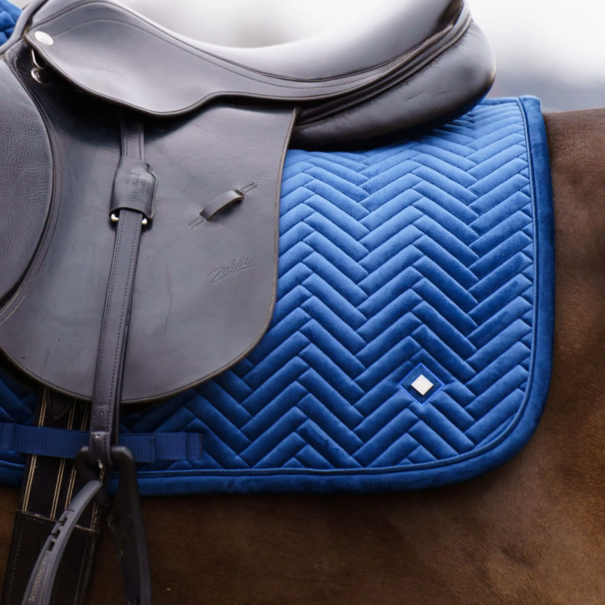 Fluweel doorgestikt zadeldek met katoenen voering voor betere ventilatie * Bandjes om het zadeldek op zijn plaats te houden met klittenband voor eenvoudig openen en sluiten