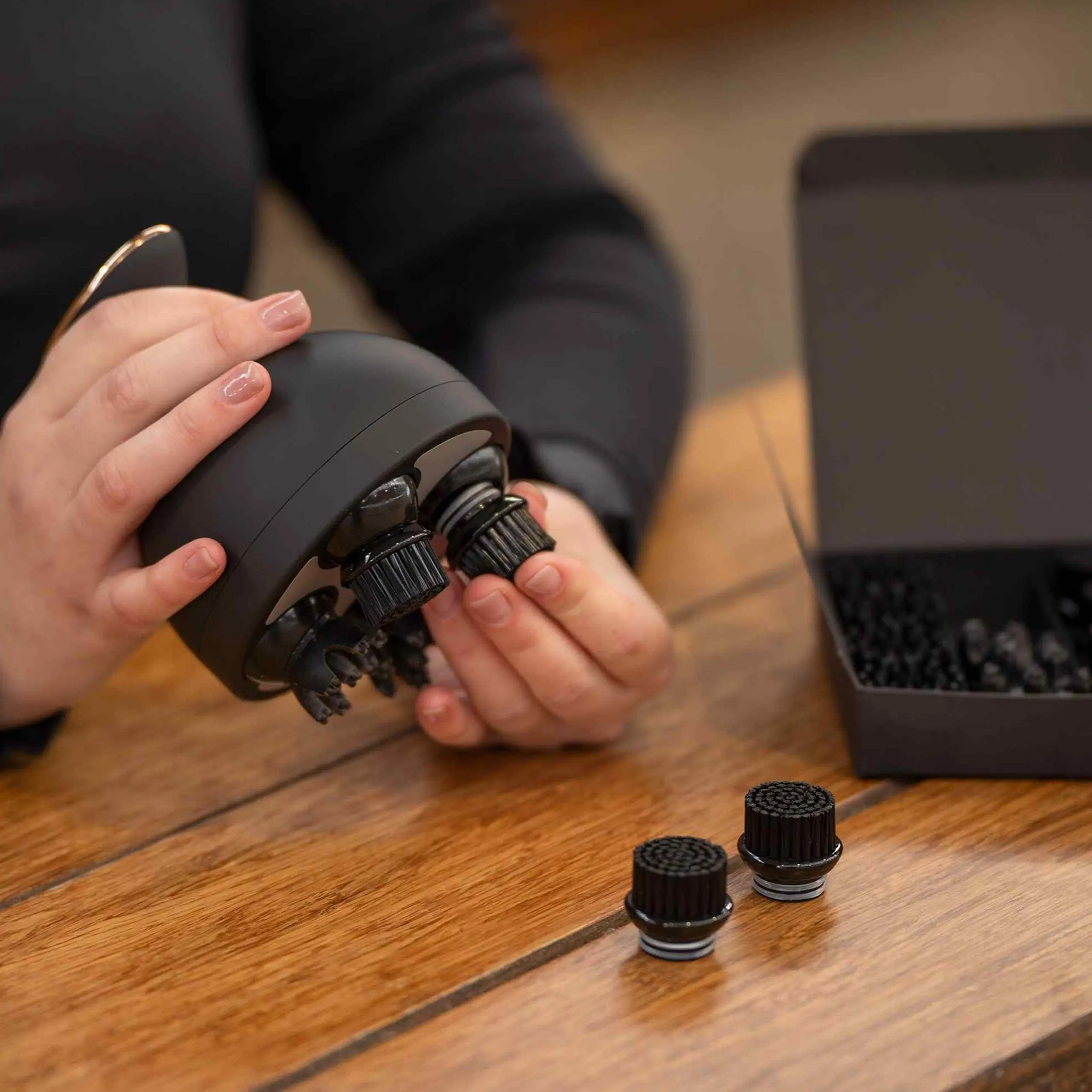 Verwen je paard met de Grooming & Relaxation Brush IRHVolta. Het apparaat wordt geleverd met 5 soorten hulpstukken die het paard ontspannen. Wrijf je shampoo in de manen, vacht en staart met behulp van de rubberen opzetstukken. Het apparaat is draagbaar, waterdicht, draadloos en wordt opgeladen in het basisstation. Dit product is getest en goedgekeurd door verschillende paardenfysio’s voor zachte ontspanning.