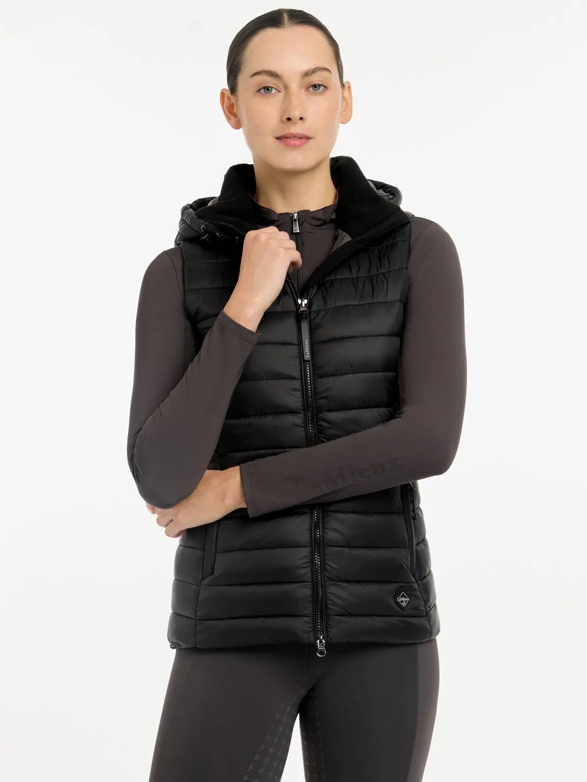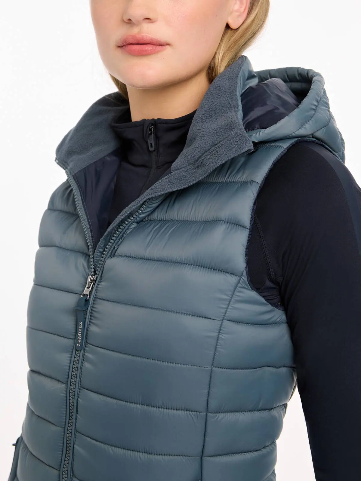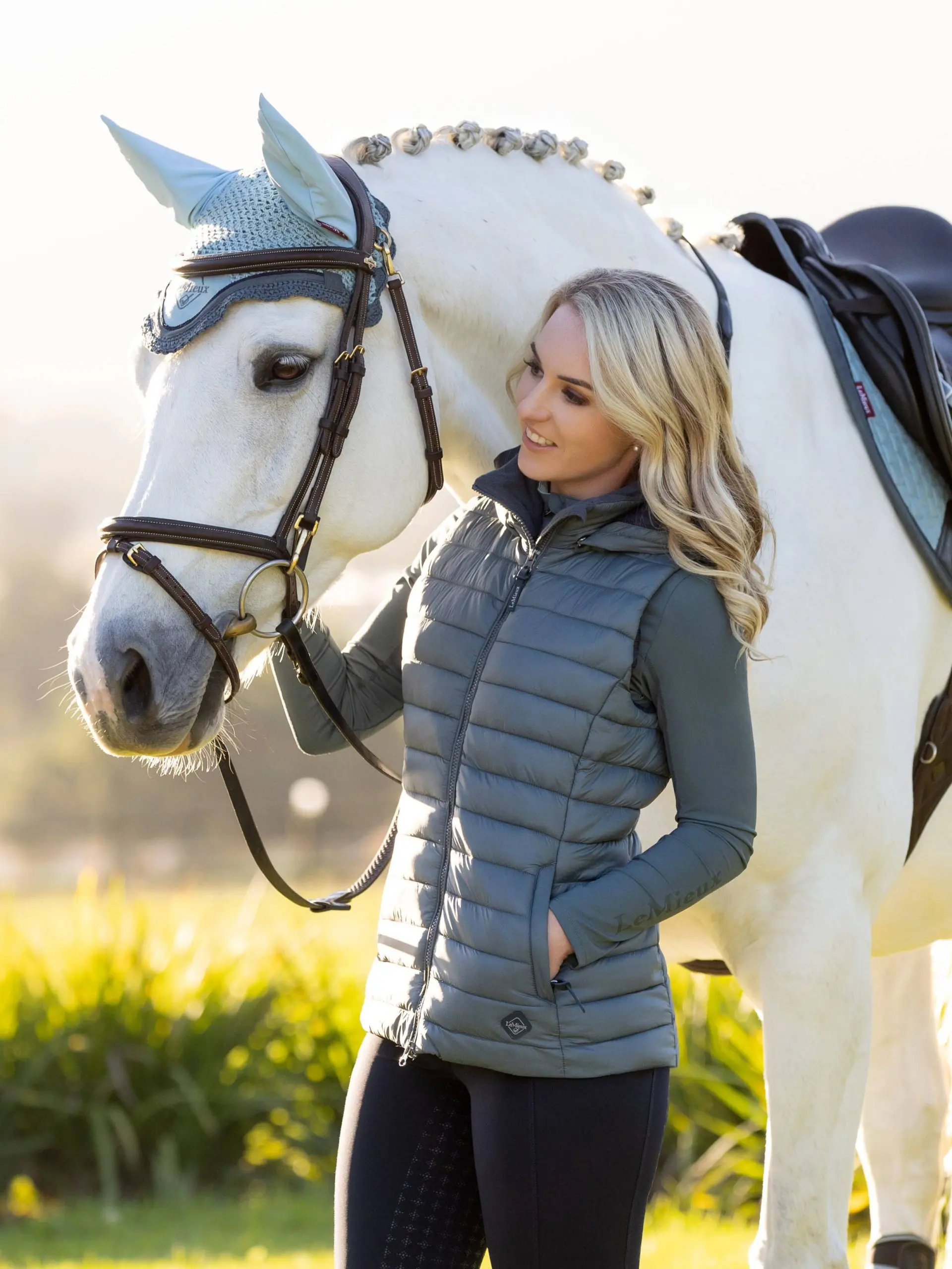 Wees voorbereid op onvoorspelbare, koude dagen met deze waterbestendige bodywarmer. De afneembare en verstelbare gewatteerde capuchon biedt veelzijdigheid, zodat je je kunt aanpassen aan veranderende weersomstandigheden. De luxueuze metalen afwerkingen zijn een bewijs van de uitstekende kwaliteit die je van LeMieux kunt verwachten.