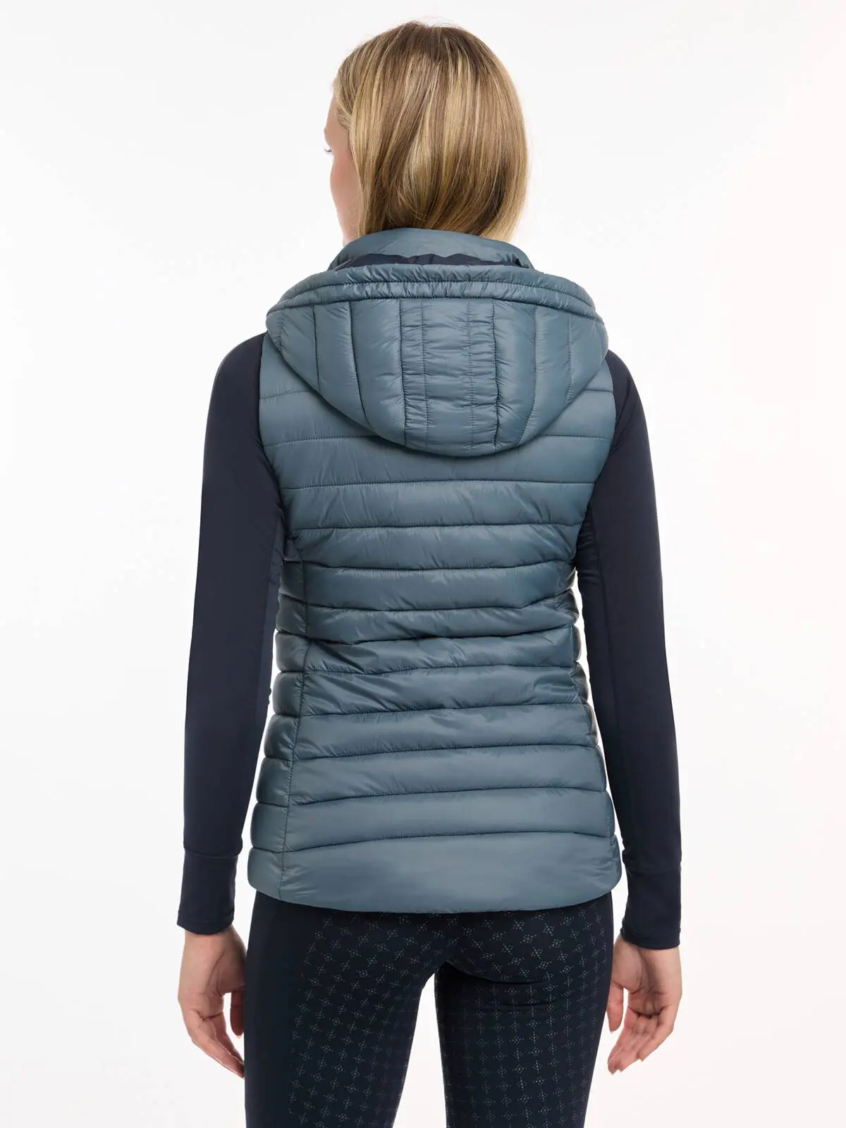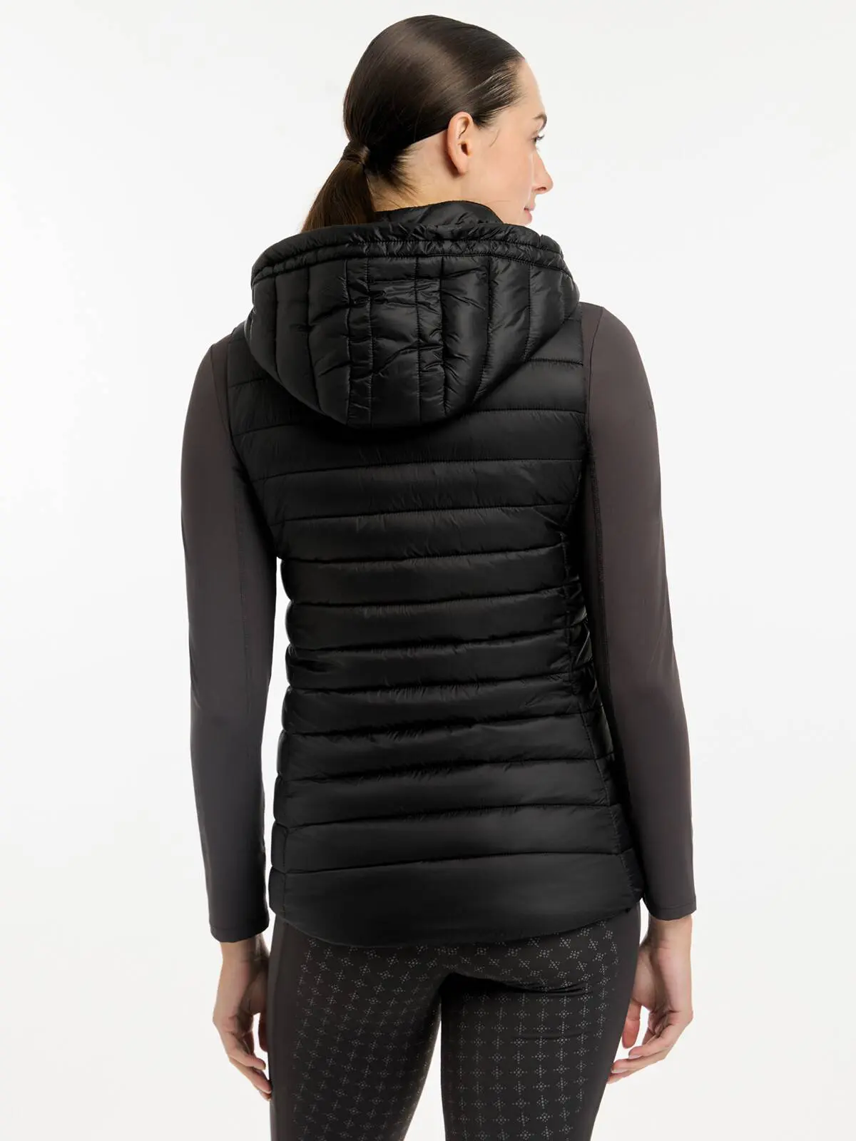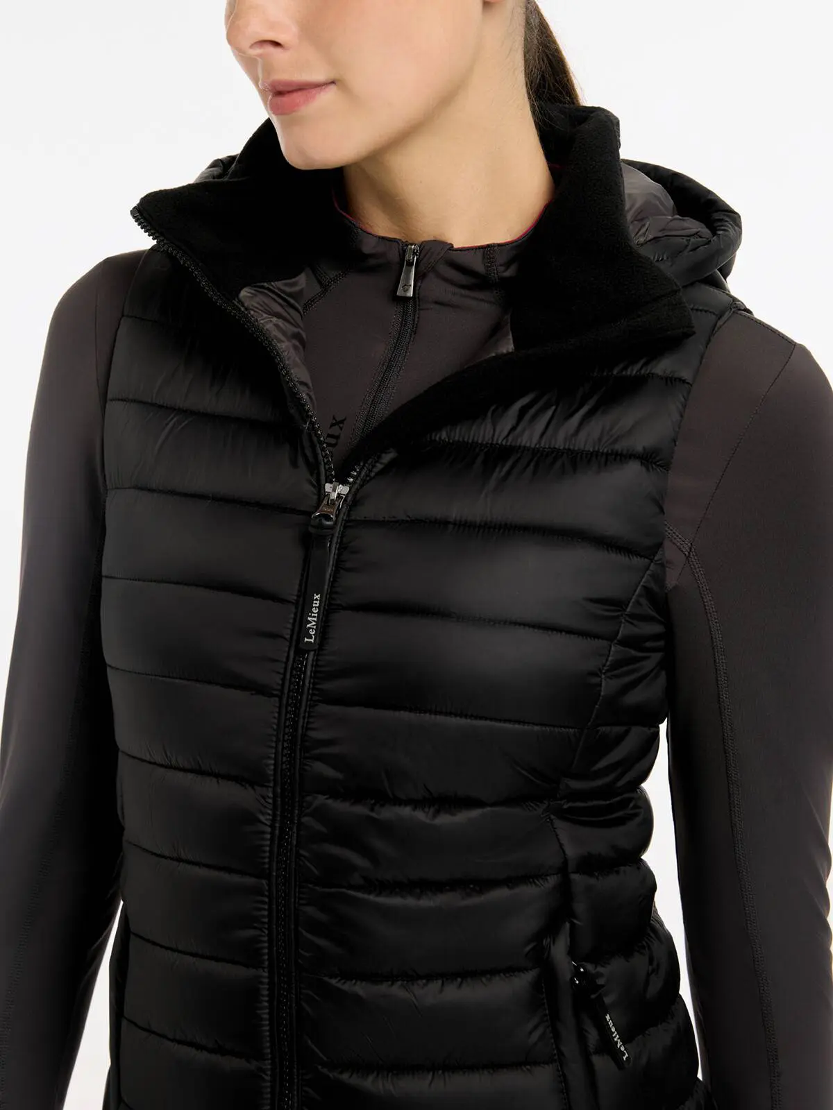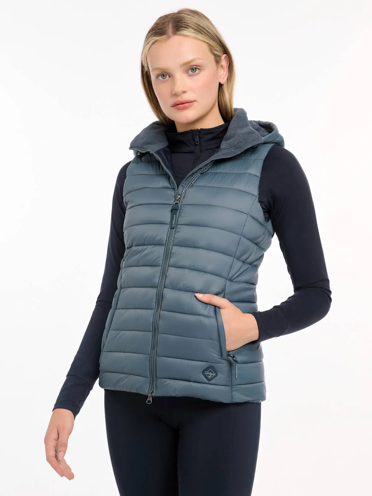 Wees voorbereid op onvoorspelbare, koude dagen met deze waterbestendige bodywarmer. De afneembare en verstelbare gewatteerde capuchon biedt veelzijdigheid, zodat je je kunt aanpassen aan veranderende weersomstandigheden. De luxueuze metalen afwerkingen zijn een bewijs van de uitstekende kwaliteit die je van LeMieux kunt verwachten.